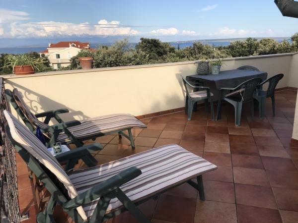 Apartament TENA (52 m²) znajduje się na pierwszym piętrze nowego domu rodzinnego. Jest w pełni umeblowany i wyposażony (klimatyzacja, telewizor, internet). Posiada dwie sypialnie z 2 łóżkami każda oraz dodatkowe łóżko dla 2 osób w salonie. Kuchnia jest przestronna i wyposażona we wszystkie niezbędne sprzęty AGD. Z przestronnego tarasu roztacza się piękny widok na morze, wyspy Olib i Pag. Do dyspozycji Gości jest kamienny grill na podwórku. Apartament znajduje się około 200 metrów od morza. Odległość od centrum miasta (sklepy, restauracje, poczta i kawiarnie) wynosi około 3-5 minut spacerem, a do zachodniego wybrzeża Silby i pięknych piaszczystych i kamienistych plaż można dotrzeć w 5-10 minut.