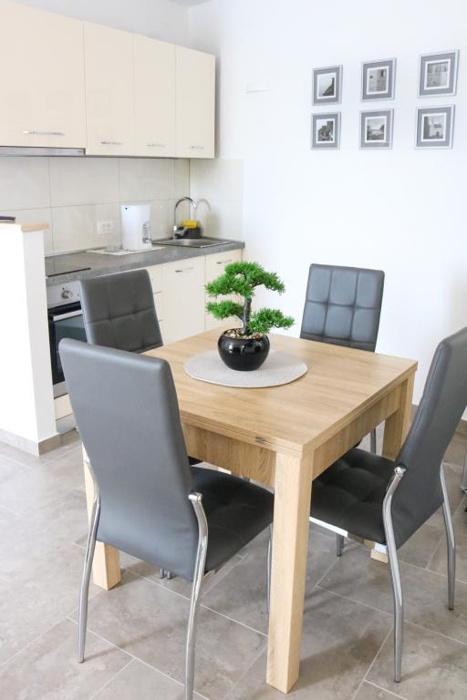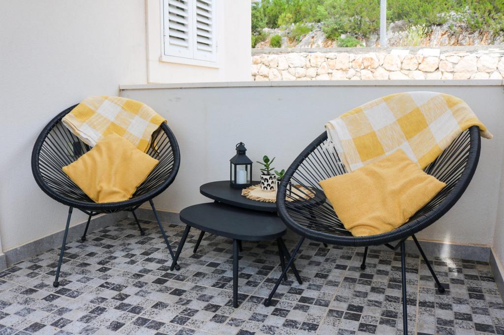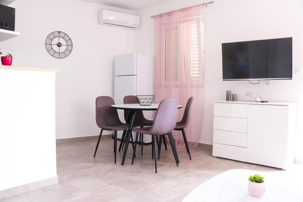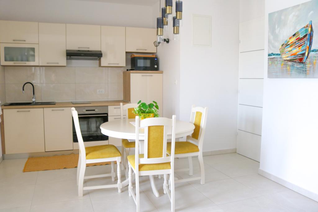 Apartamenty w pełni wyposażone, zgodnie z nowymi warunkami kategoryzacji.Apartamenty są nowocześnie urządzone. Położony w cichej zatoce. Obiekt położony jest bezpośrednio nad morzem. Budynek został nowo wybudowany w 2022 roku. Do oddalonego o zaledwie 4 kilometry centrum można dojechać samochodem, rowerem, autostradą lub przez miejscowość Slađenovići.