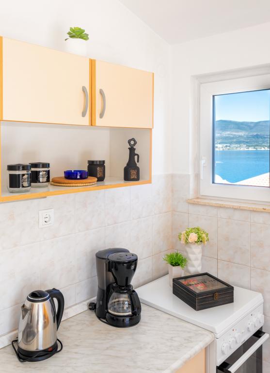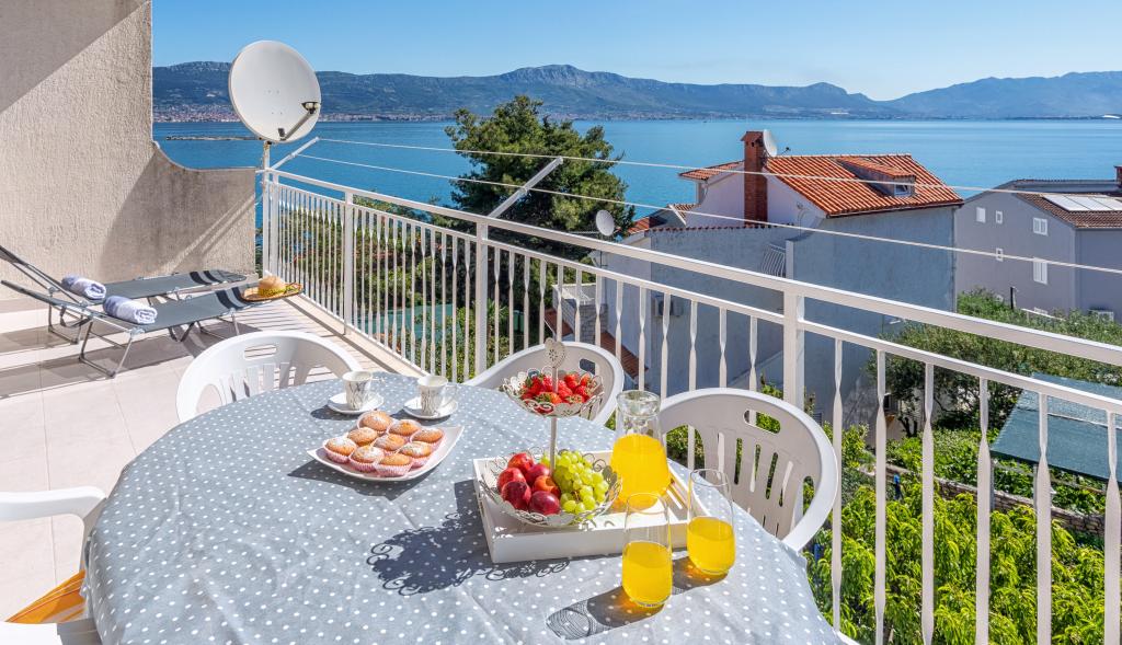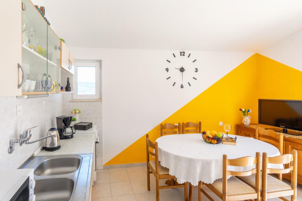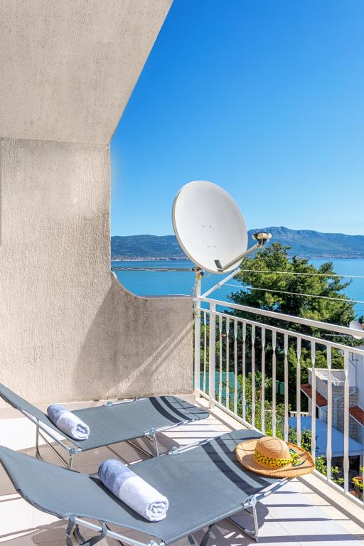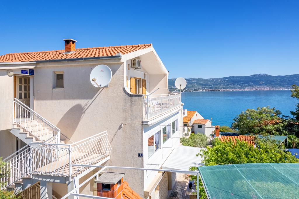 Apartament Stella znajduje się w spokojnej miejscowości turystycznej Slatine na wyspie Čiovo. Znajduje się zaledwie 80 metrów od morza i oferuje piękny widok na miasto Split i zatokę Kaštela. Właśnie z tego powodu obiekt ten jest idealnym miejscem na przyjemne i relaksujące letnie wakacje.