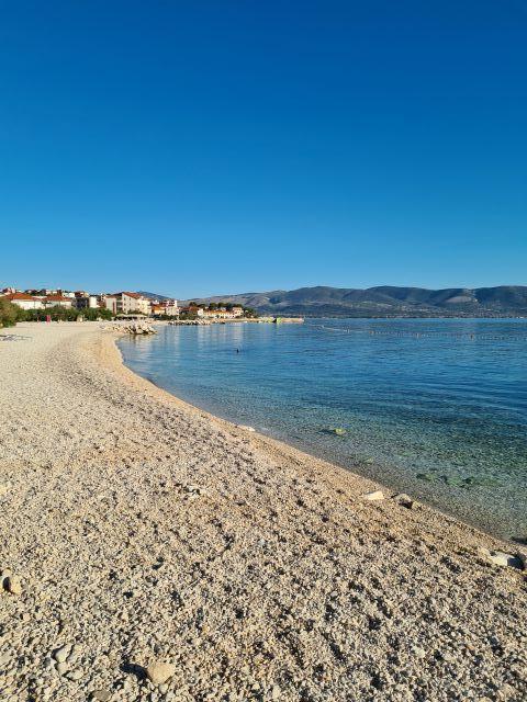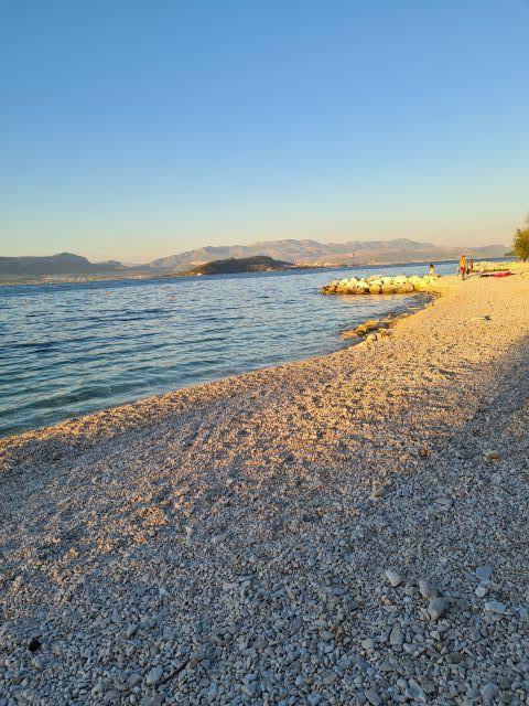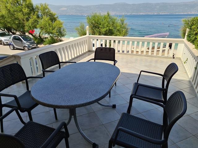 Trzygwiazdkowe apartamenty Boban znajdują się w miejscowości Slatine na wyspie Čiovo, 10 metrów od morza. Przed apartamentami znajduje się kamienista plaża, idealna do pływania. Z tarasu apartamentu roztacza się piękny widok na plażę, morze, Zatokę Kaštelańską, Split, Trogir i samo miasto Slatine. Apartamenty są komfortowe, wyposażone w telewizję satelitarną, internet i klimatyzację. W ogrodzie domu znajduje się letni prysznic oraz grill, z którego mogą korzystać goście. Goście apartamentów mają do dyspozycji parking. Slatine to mała wioska rybacka, w której nadal można kupić świeże ryby, lokalne warzywa i oliwę z oliwek. Latem odbywają się festiwale i imprezy sportowe. Restauracje, pizzerie, tawerny, kawiarnie i sklepy znajdują się w samym centrum miasta, zaledwie 5 minut spacerem wzdłuż morza od domu rodziny Boban. Na południu wyspy Čiovo, zaledwie 4 km dalej, znajduje się słynne sanktuarium Matki Bożej Prizidnickiej, które zdecydowanie warto odwiedzić. Slatine na wyspie Čiovo oddalone jest o 8 km od Trogiru i 35 km od Splitu – obu miast objętych patronatem UNESCO.