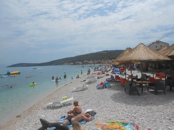 Witam . Byłem z rodziną 2 razy. Kochana właścicielka. Mieszkania czysciutkie, spokuj i cisza, do plaży 20m. Woda błękit, drobne kamyki. W tym roku znowu tu planuje. Polecam !!!!!!!