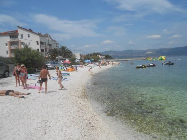 Czuliśmy się bardzo dobrze u pani Ivanki, mieszkanie było czyste, dobrze wyposażone, wszystkie okna miały siatki. Gospodarz to bardzo miła pani, zapewniła nam wszystko czego potrzebowaliśmy. Dom jest naprawdę blisko plaży, a jednocześnie pod lasem, więc przez większość czasu nie było potrzeby klimatyzacji, było przyjemne powietrze z gór (a my mieszkaliśmy na poddaszu). Plaża jest czysta, kamienista, bezludna. Bliskość i dobry dojazd do dwóch pięknych, historycznych miast - Trogiru i Splitu (samochodem, komunikacją miejską, statkiem). Bilet na statek Slatine - Split kosztuje 5,50 euro