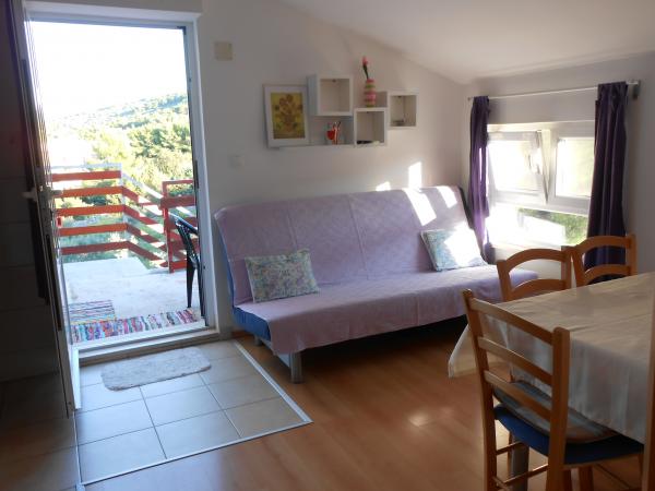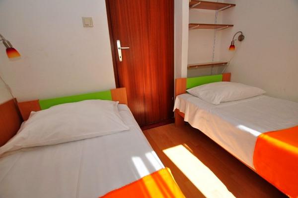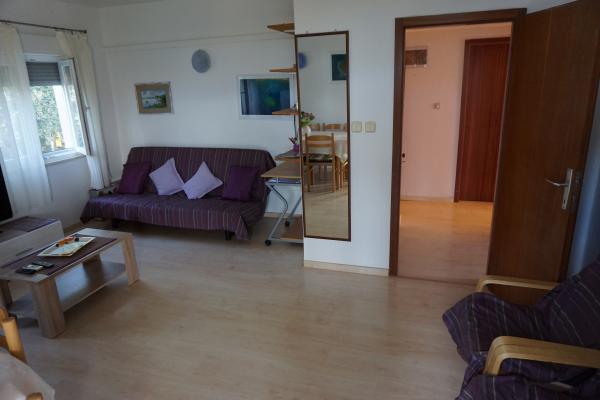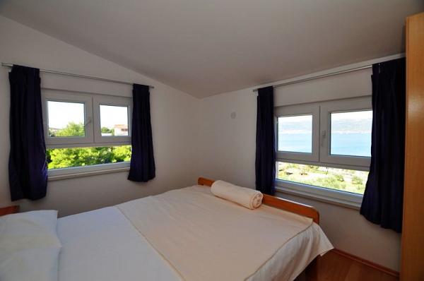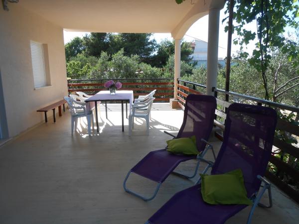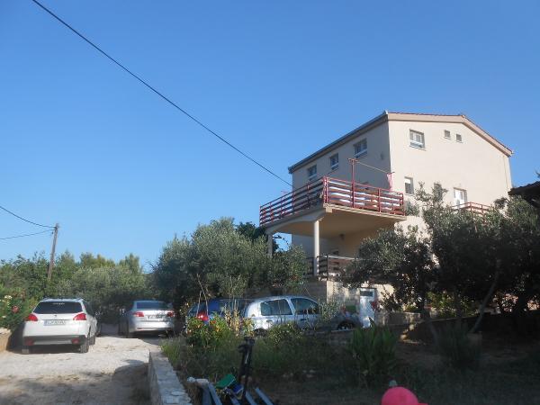 Dom znajduje się w domu rodzinnym. 3 apartamenty mogą pomieścić łącznie 16 osób. Apartament A1 (6 +2), 65 m2, dla 8 osób, 3 sypialnie (dwa podwójne łóżka), pokój dzienny z sofą dla 2 osób, w pełni wyposażona kuchnia, łazienka z wanną i WC, oddzielne WC, duży orgadena 40 m2 taras z widokiem na morze. Jest w pełni wyposażone i klimatyzowane. Znajduje się na parterze z widokiem na morze. Nadaje się dla dwóch rodzin z dziećmi. A2 Apartament (2 2) i 35 m2 dla 4 osób. Sypialnia z podwójnym łóżkiem, pokój dzienny / kuchnia z rozkładaną narożnik dla dwóch osób, łazienka z prysznicem, taras. Pełni wyposażone klimatyzowane. Znajduje się na drugim piętrze, z widokiem na morze. Apartament A2 (2 2) b, 24 m2, dla 4 osób. , Sypialnia z podwójnym łóżkiem, pokój dzienny z rozkładaną sofą, w pełni wyposażona kuchnia, łazienka z prysznicem, taras z pięknym widokiem na morze i wzgórza, znajduje się na drugim piętrze. ,