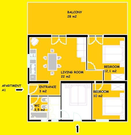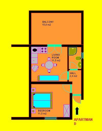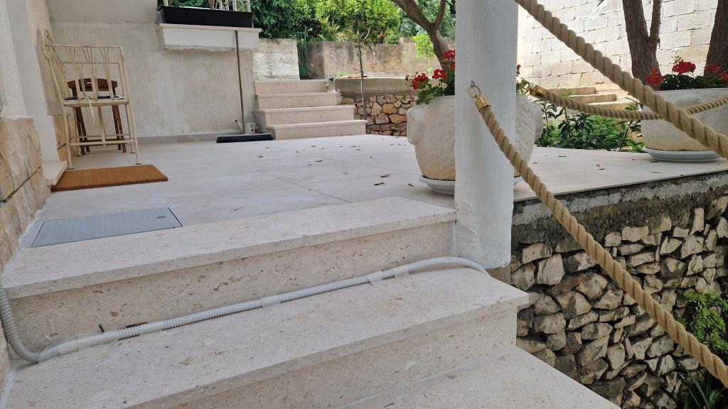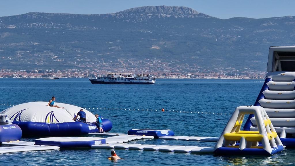 Apartamenty położone są w cichym otoczeniu w pierwszym rzędzie do morza. Dostępny jest parking. Dziesięć minut spacerem dzieli je od miasta Slatina, czyli tyle, ile zajmuje dotarcie do rynku. Do Trogiru i Splitu można również dotrzeć łodzią w pół godziny. Lotnisko oddalone jest o pół godziny jazdy od hotelu. Ceny mieszkań zawierają podatek turystyczny, bezpłatny parking, nieograniczone korzystanie z klimatyzacji, usługi sprzątania. Minimalny pobyt to pięć nocy. Przyjdź i ciesz się morzem i słońcem...