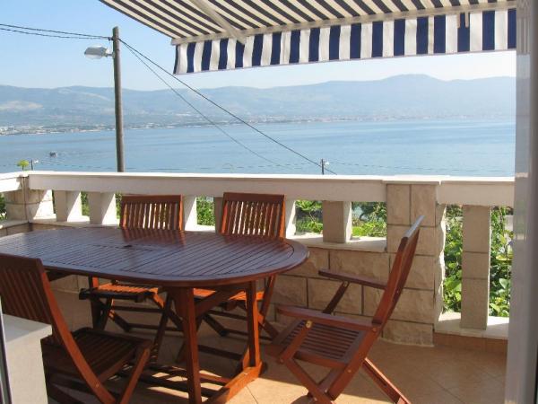 Apartament zgodny z opisem i zdjęciami. Dobrze wyposażony. 2 sypialnie, pokój z jadalnią z 2 wersalkami, kuchnia (jest wszystko) i łazienka. Piękny widok z pokoju i balkonu. Na balkonie stół z krzesłami, leżaki i suszarka. Bardzo blisko do plaży, woda czysta, turkusowa. Na plaży bar, prysznic. Plaża kamienista, żwirowa i miejscami betonowa. Bardzo blisko do Trogiru i Splitu - taksówki wodne lub komunikacja miejska. Do marketu ok. 300 m, pieczywo dowozi pod sąsiedni dom obwoźna piekarnia- codziennie ok. 9 rano. Właściciel dba o gości, miły, uśmiechnięty.Serdecznie polecamy!