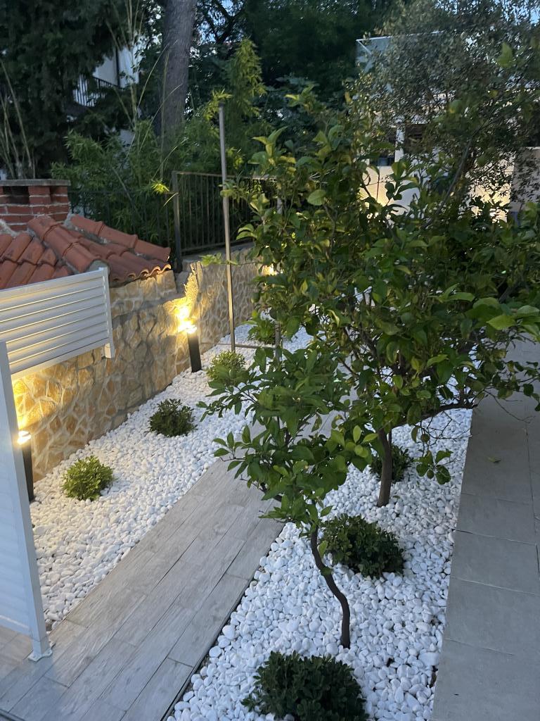 Tydzień w Marinie minął zdecydowanie za szybko. To już drugi raz, kiedy przyjechaliśmy do Chorwacji i jednym dużym powodem była właścicielka Marina. Zostawiliśmy tak pozytywne wrażenie z ostatniego razu, że czuliśmy, że bezpiecznie jest zarezerwować nocleg bezpośrednio u niego. To zakwaterowanie było więcej niż się spodziewaliśmy. Basen na podwórku był całkowitym zaskoczeniem. Było tam cudownie spokojnie. To było bardzo blisko plaży i można było zabrać ze sobą leżak. Dobrze było też być na plaży. Byliśmy w dwóch różnych apartamentach podczas naszych wakacji. Pierwszy apartament posiadał jacuzzi, w którym wspaniale było spędzać czas wieczorem. Atutem drugiego mieszkania było zacienione, prywatne podwórko, na którym wieczorami graliśmy całą rodziną w karty. W mieszkaniach było naprawdę czysto, a powietrzne pompy ciepła wspaniale chłodziły wnętrza. Przestrzenie zewnętrzne były również w naprawdę czystym stanie przez cały tydzień. Nie korzystaliśmy z miejsca na grilla. Grille są grillami węglowymi i wymagałyby zakupu węgli i innych akcesoriów oświetleniowych. Z powodu tygodnia nie zawracaliśmy sobie tym głowy. Właściciel jest naprawdę przyjazny i zawsze gotowy do pomocy. Na pewno wrócimy.