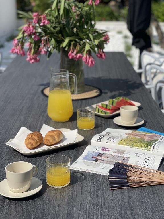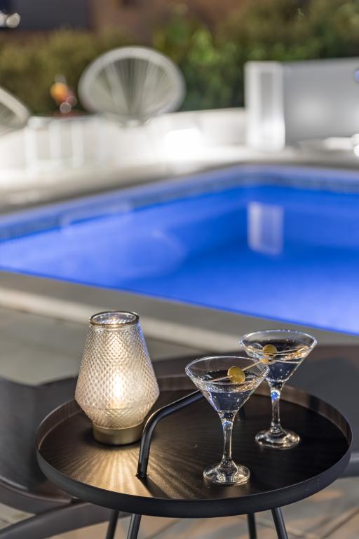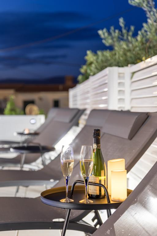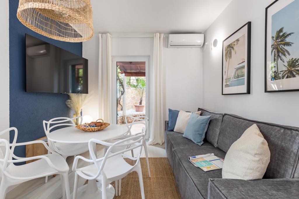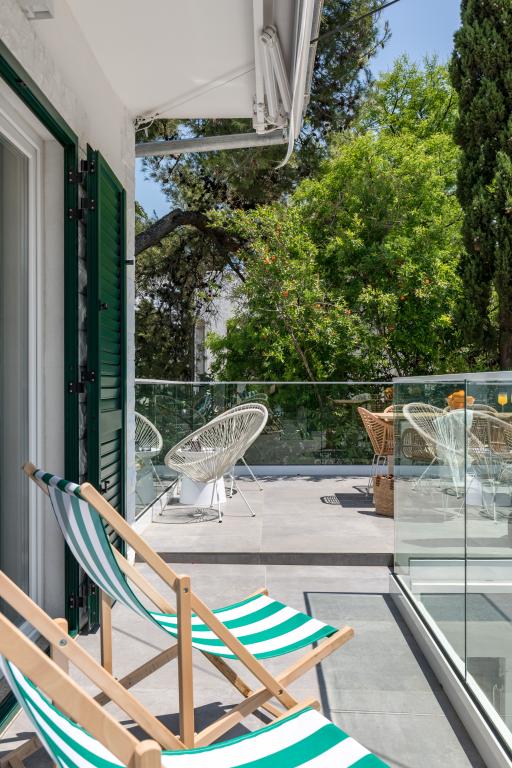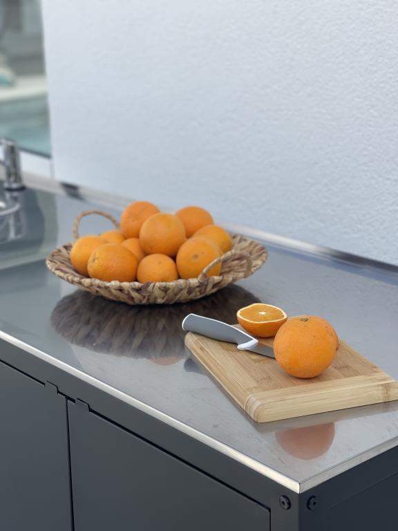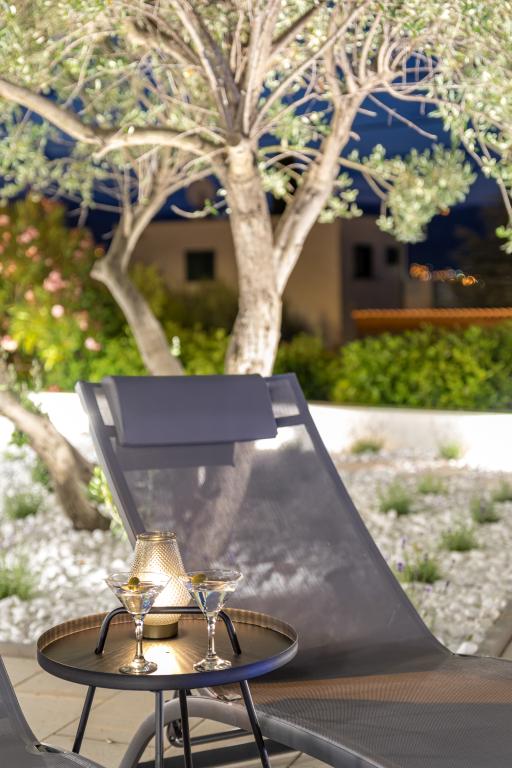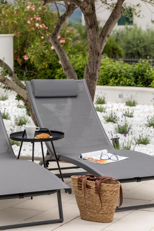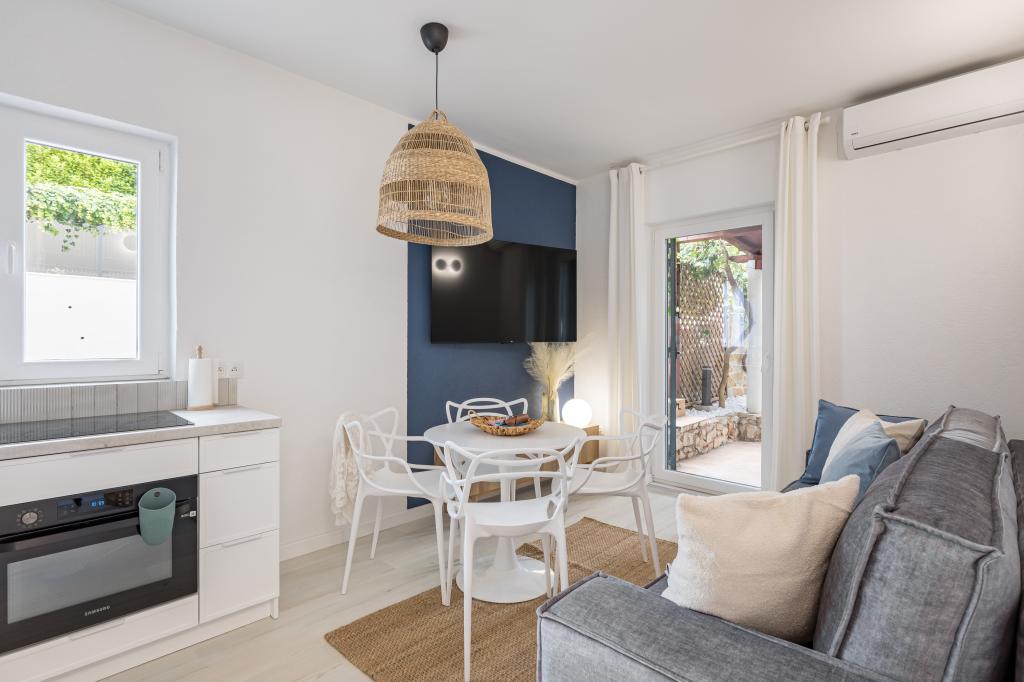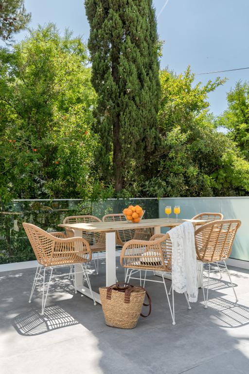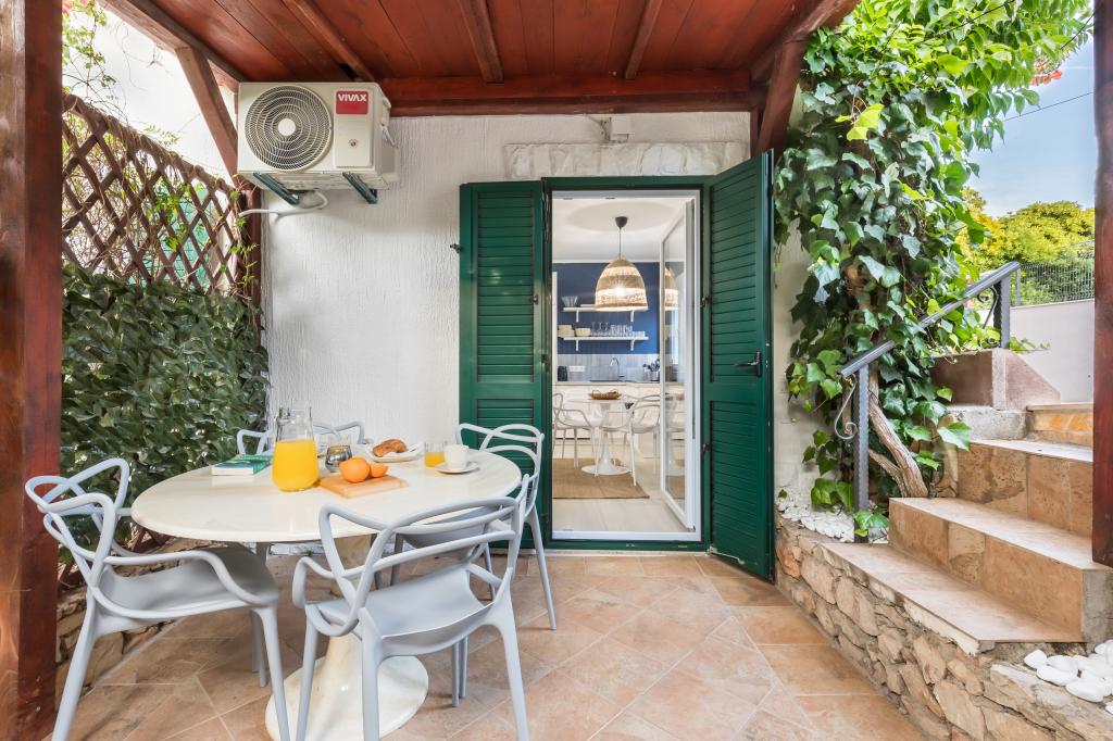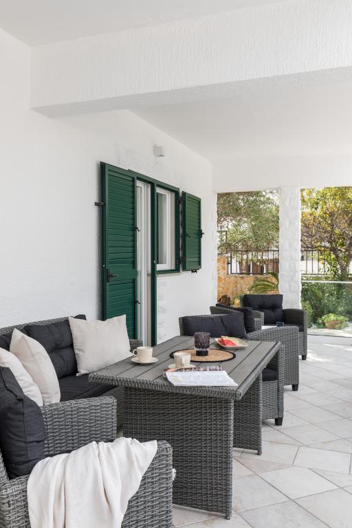 Apartamenty w Marina House: A, B, C i E mają bezpośredni widok na morze, taras o powierzchni 25 m², w pełni wyposażony. Apartament D nie ma widoku na morze. Przed domem znajduje się duży, ogrodzony ogród, idealny dla dzieci. W ogrodzie znajduje się grill i duży stół. Plaża o długości 35 metrów jest piaszczysta i oferuje cień. Posiadamy również duży, podgrzewany basen.