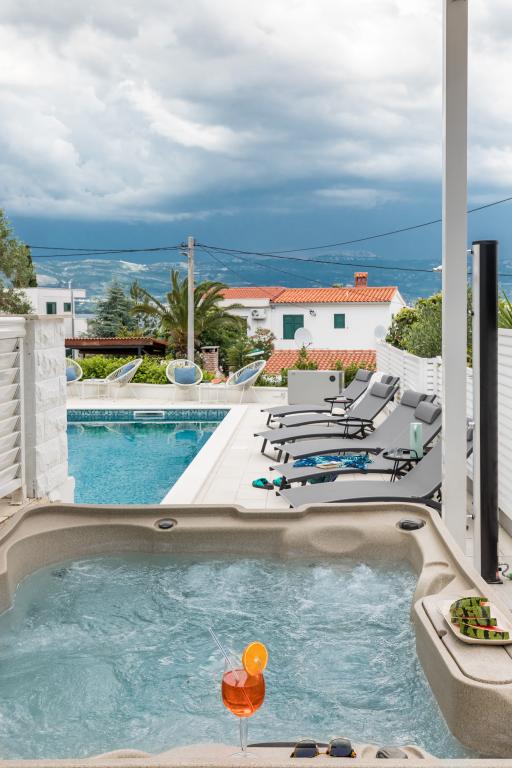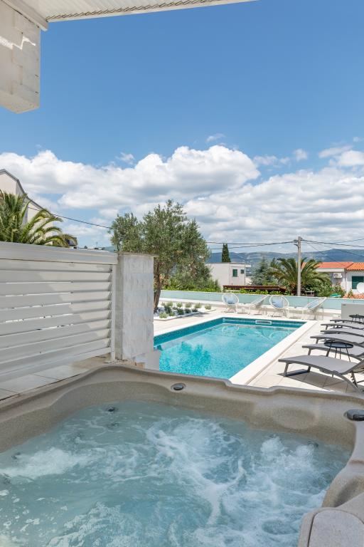 Opłata nie wliczone w cenę.Właśnie wróciliśmy z naszego letniego kurortu Slatine. Aby uniknąć „szalonego tłoku” na chorwackiej autostradzie i przy punktach poboru opłat, z ciężkim sercem skróciliśmy nasz coroczny urlop o jeden dzień i rozpoczęliśmy od nowa w piątek. Z ciężkim sercem, ponieważ wszyscy byliśmy bardzo zadowoleni z tego pięknego zakwaterowania. Byliśmy 5 osób dorosłych i 3 dzieci w apartamentach A i E. Wszystko jest pięknie nowo umeblowane, pokoje duże więc każdy może cieszyć się swoją prywatnością. Świetny basen, a także wanna do masażu. Ładny stół z wygodnymi fotelami i dużą ilością leżaków. Obok basenu znajduje się mała kuchnia na świeżym powietrzu z 2 grillami węglowymi. Plaża z białymi kamykami znajduje się 2 minuty od hotelu i dlatego jest idealna dla dzieci i osób starszych. Nie jest tłoczno. W apartamentach mieszkają mili goście, a miejsc parkingowych jest wystarczająco dużo. W sumie wszystko, czego można sobie życzyć na udane wakacje, oprócz korków, ale po drugiej stronie ulicy, na kontynencie, znajduje się lotnisko w Splicie. W każdym razie bardzo dziękuję Marina za nasz piękny pobyt. Rodzina Schumich z Austrii