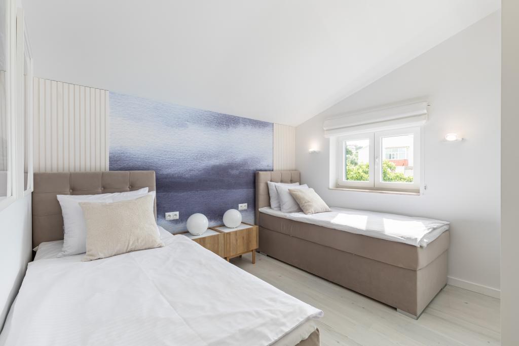 Z czystym sumieniem polecam Apartament Marina ze względu na wysoki standard obiektu, jak również biorąc pod uwagę otoczenie. Budynek zlokalizowany jest bardzo blisko pięknej, spokojnej plaży. Idealny dla każdego, niezalezienie od wieku. Dodatkowym atutem jest akceptacji zwierząt. Duży, podgrzewany basen w pięknym ogrodzie (grile, leżaki). Widok na morze z Apartamentu A 2+2 przepiękny (duży, przeszklony taras). Marina to bardzo miła, przyjazna oraz kontaktowa osoba. Bardzo dziękujemy za gościnę.