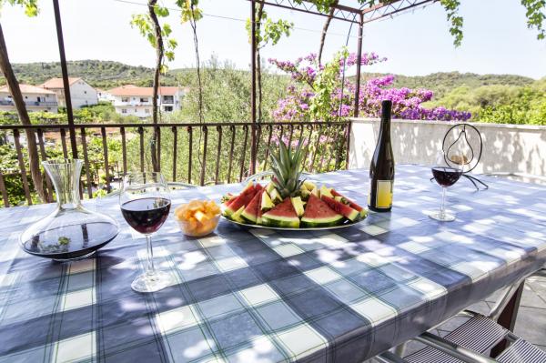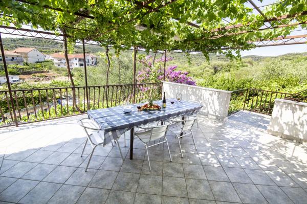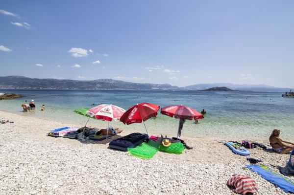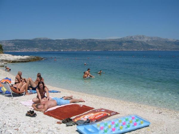 Apartamenty znajdują się w rodzinnym domu na prywatnej działce o powierzchni 2000 m2 porośniętej śródziemnomorską roślinnością, mandarynkami, pomarańczami, cytrynami, figami i oliwkami. Każdy apartament posiada duży taras w naturalnym cieniu winorośli ze stołem i krzesłami. Wszystkie apartamenty są w pełni umeblowane i wyposażone, więc jedyne czego potrzebujesz to ręczniki plażowe i higieniczne. Naturalna trawa w cieniu drzewa oliwnego jest odpowiednia dla małych dzieci do zabawy. Wszystkie apartamenty są klimatyzowane. Wspólny taras o powierzchni 150 m2 z grillem i stołem w naturalnym odcieniu kiwi jest do dyspozycji gości na ewentualne spotkania. Do dyspozycji Gości jest również prysznic na świeżym powietrzu i leżaki. Na terenie wszystkich apartamentów znajduje się również ogrodzony parking dla samochodów. Najbliższa plaża znajduje się 140 m od apartamentu. Słynna naturalna plaża Kava oddalona jest od apartamentu o 3 km. 5 minut od apartamentu znajduje się przystań łodzi turystycznej, która kilka razy dziennie łączy Slatine ze Splitem i Trogirem.