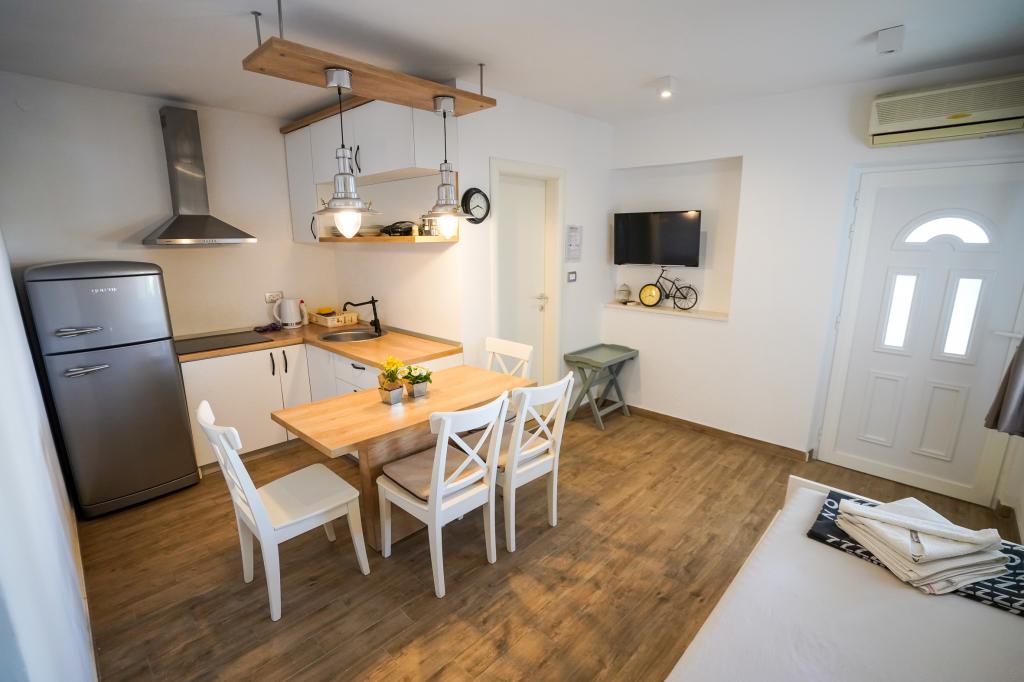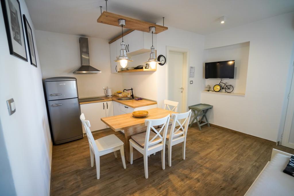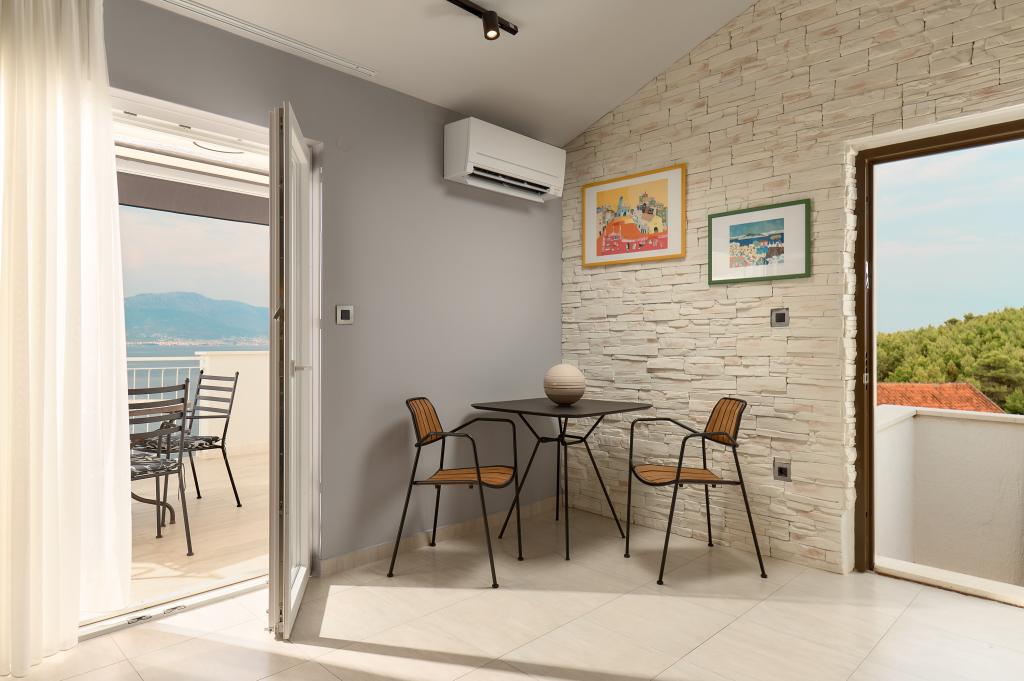 Zapraszamy do naszych pięknych apartamentów Quinn Tiger, Rustica i Sky, położonych w spokojnej części miejscowości Slatina na wyspie Čiovo. Są idealnym miejscem na relaksujący wypoczynek nad morzem, w pobliżu atrakcji kulturalnych i historycznych. Quinn Tiger wyróżnia się wyrafinowanym wzornictwem i luksusowymi detalami. Przestronne wnętrze oraz połączenie ciepłych i wyrazistych barw sprawiają, że jest to idealny wybór dla tych, którzy chcą czegoś wyjątkowego. Apartament Rustica dzieli duży wspólny taras, idealny na poranną kawę lub wieczorne spotkania towarzyskie. Rustica to połączenie nowoczesnego i tradycyjnego stylu z drewnianymi detalami, które tworzą przytulną, domową atmosferę. Sky emanuje elegancją i nowoczesnym designem. Jasne barwy i przestronna przestrzeń tworzą idealną atmosferę sprzyjającą relaksowi. Oprócz wspólnego tarasu, obiekt oferuje również własny, oddzielny taras, zapewniający pełną prywatność. Wszystkie apartamenty zlokalizowane są w prywatnym domu, co zapewnia ciszę i spokój, zaledwie 100 metrów od plaży, sklepów, restauracji i barów plażowych. Historyczne miasto Trogir, znajdujące się pod ochroną UNESCO.
