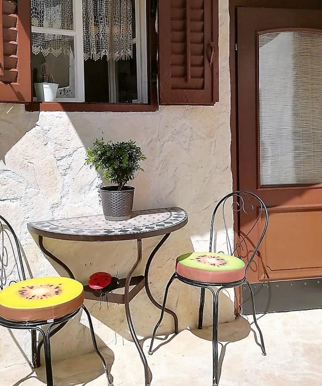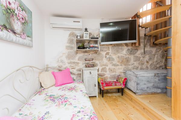 Dama to mały dalmatyński dom położony w centrum miasta, w spokojnej okolicy. Dom może pomieścić 3 osoby. Składa się z parteru z kuchnią, salonem i łazienką, następnie niskiego poddasza z sypialnią i ogródka z sofą. Gospodarz tam nie mieszka, ale jest zawsze do Twojej dyspozycji. Przyjedź i spędź niezapomniane wakacje. Nie mamy prywatnego miejsca parkingowego! Parking publiczny w bezpośrednim sąsiedztwie domu.
