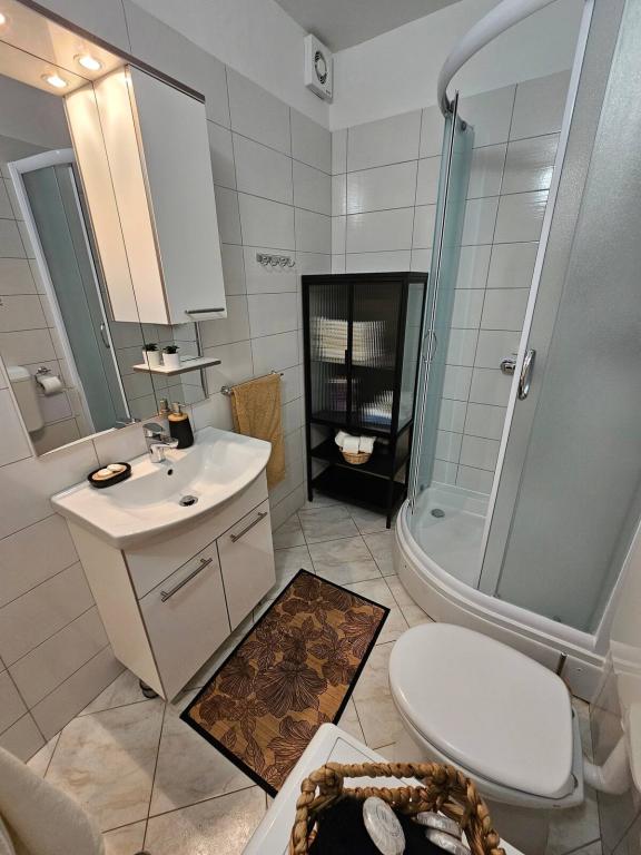 Opłata jest wliczone w cenę.Apartament Minja Split położony jest na zachodnim wybrzeżu Splitu. Oferuje on bezpłatne WiFi, taras i balkon z widokiem na wewnętrzny dziedziniec. Składa się z sypialni z łóżkiem podwójnym, salonu z rozkładaną sofą dla dwóch osób, w pełni wyposażonej kuchni (lodówka, piekarnik, kuchenka mikrofalowa, płyta grzewcza, ekspres do kawy/herbaty, pralka) oraz łazienki z prysznicem, suszarką do włosów i zestawem kosmetyków. Pościel, ręczniki i żelazko są zapewnione. W obiekcie obowiązuje zakaz palenia, ale jest wyznaczone miejsce dla palących. Apartament wyposażony jest w klimatyzację, ogrzewanie i telewizję kablową. Parking jest dostępny w zależności od dostępności. Publiczny garaż znajduje się 50 metrów od apartamentu za dodatkową opłatą.