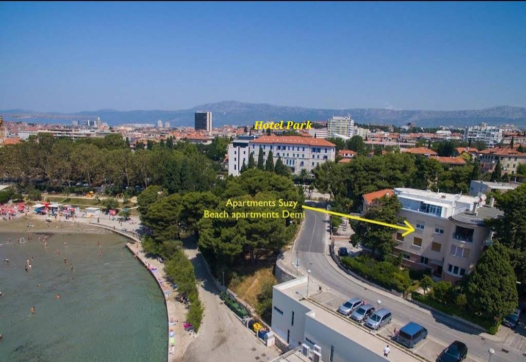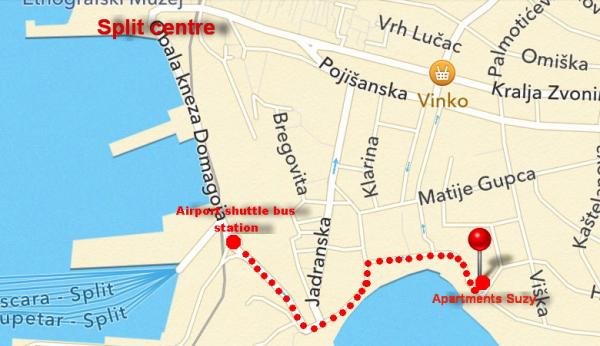 Apartamenty położone są 20 metrów od popularnej plaży Bačvice. Obiekt oddalony jest o 5 minut spacerem od portu promowego, dworca autobusowego i dworca kolejowego oraz o 10–15 minut spacerem od centrum Splitu. Blisko szpitala Firule, kortów tenisowych, wielu restauracji i barów wzdłuż promenady. Prywatny parking jest dostępny na życzenie. Posiadamy jedno miejsce parkingowe.