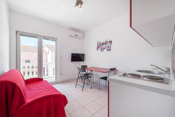 Apartamenty znajdują się w spokojnej miejscowości Srima, obok Vodice. Znajdują się one zaledwie kilka minut spacerem od pięknie urządzonych plaż i około pół godziny przyjemnego spaceru od turystycznego centrum Vodice. Apartamenty wyposażone są w klimatyzację, nowe nowoczesne meble, wysokiej jakości łazienkę i telewizor. Na podwórku domu znajduje się duży grill do bezpłatnego użytku.