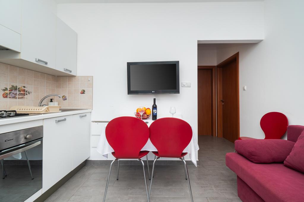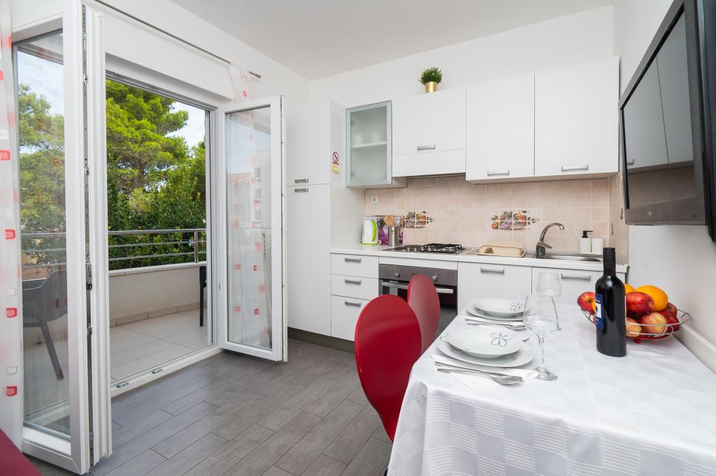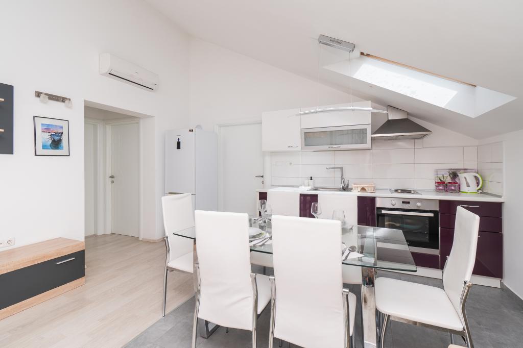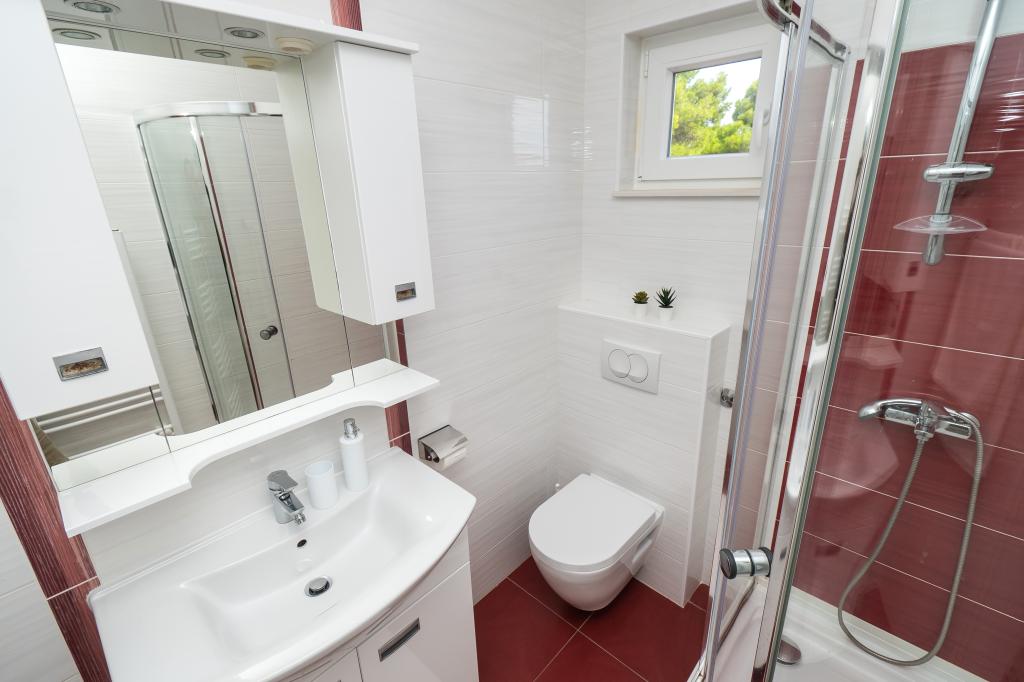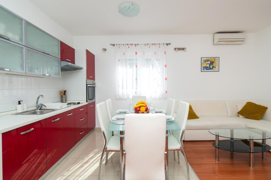 Dom położony jest w cichej spokojnej okolicy. Gospodarz bardzo serdeczny, pomocny. Mieszkanie jest bardzo czyste, zadbane i nowocześnie wyposażone – zgodne z opisem i zdjęciami. Wyposażenie zawiera wszystko, co jest potrzebne do przyjemnego pobytu, mieszkanie posiada duży piękny balkon z widokiem na morze i wyspę. Najbliższa plaża jest żwirowa, odpowiednia dla małych dzieci. Bardzo dziękujemy gospodarzom za ciepłe przyjęcie, pomoc (i pyszne warzywa z ogródka właścicieli).