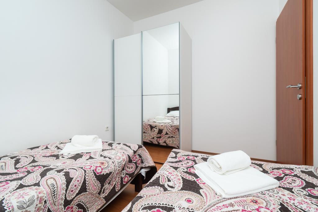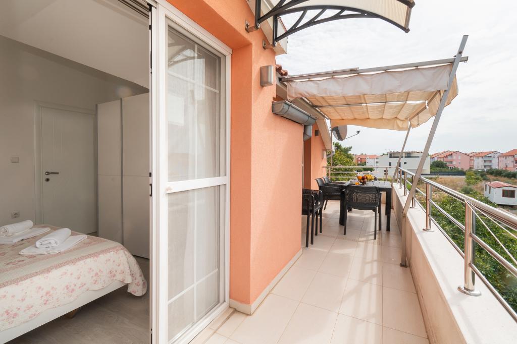Znajdują się one w środkowej części Adriatyku, w pobliżu słynnego kurortu Vodice, w małej wiosce Srima, tuż przy piaszczystej plaży z widokiem na morze i wyspy. Obiekt jest nowy, z pięknie urządzonymi i nowocześnie urządzonymi apartamentami, szczególnie odpowiednimi dla rodzin z dziećmi, a także dla każdego, kto chce się zrelaksować. Dom położony jest w pobliżu plaży, w drugim rzędzie do morza, co gwarantuje wakacje z maksymalnym spokojem i jest wyjątkowym doświadczeniem wakacji na chorwackim Adriatyku. Apartamenty posiadają duże tarasy z widokiem na morze. Plaże są szczególnie odpowiednie dla dzieci, ponieważ dno długiej plaży jest płytkie i pokryte drobnym piaskiem. Każdy apartament wyposażony jest w klimatyzację i telewizję satelitarną. Parking znajduje się na dziedzińcu domu, gdzie wciąż jest prysznic na zewnątrz i grill.