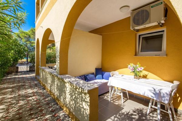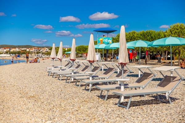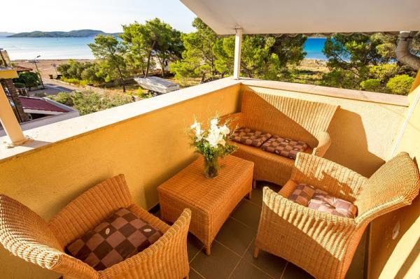 trzy gwiazdki, pierwszy rząd do morza (50 m do piaszczystej plaży), apartamenty dwu- i trzypokojowe, w pełni umeblowane (klimatyzacja, telewizor, internet WiFi). Każdy apartament posiada kuchnię, łazienkę i balkon z widokiem na morze. Istnieje również grill na świeżym powietrzu.
