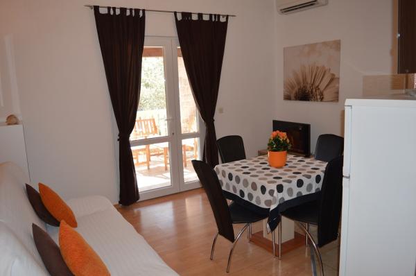 Apartamenty MALI DVORI znajdują się w malowniczej miejscowości turystycznej Srima. Srima to przyjemne i spokojne miejsce idealne na rodzinny wypoczynek. Dom oferuje 3 apartamenty. Nowoczesne i funkcjonalnie urządzone apartamenty oferują wszystko, co niezbędne do beztroskiego i przyjemnego pobytu. Każdy apartament posiada osobne wejście oraz zadaszony taras z widokiem na ogród i częściowo na morze. Piaszczysta plaża znajduje się zaledwie 80 metrów od domu i jest idealna dla małych dzieci. Jeśli szukasz dobrej zabawy i rozrywki, zaledwie 3 km dalej znajduje się Vodice, znany kurort turystyczny.