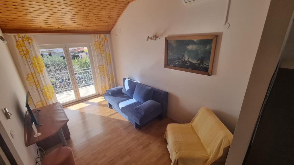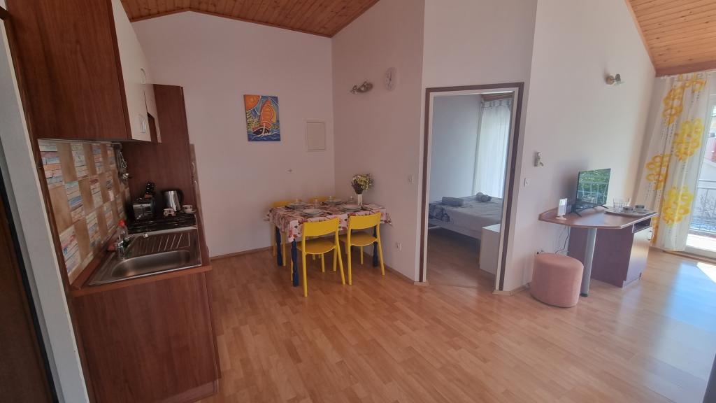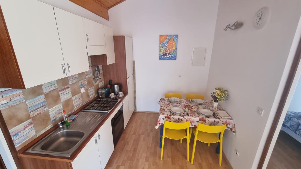 Apartamenty znajdują się w dzielnicy Vodice – Srima. Oferujemy 3 apartamenty. Na pierwszym piętrze naszego domu znajdują się apartamenty 2x2, a na parterze kawalerka 2x1. Wszystkie apartamenty są klimatyzowane. Do każdego apartamentu przynależy miejsce parkingowe w cieniu. W ogrodzie znajduje się grill i plac zabaw dla dzieci. Dom położony jest przy bocznej ulicy, co zapewnia spokój i prywatność. Plaża oddalona jest o 200 m, a sklep o 150 m. Centrum miasta (Srime) oddalone jest o 500 m, a centrum Vodic o około 2 km, czyli 20 minut spacerem.