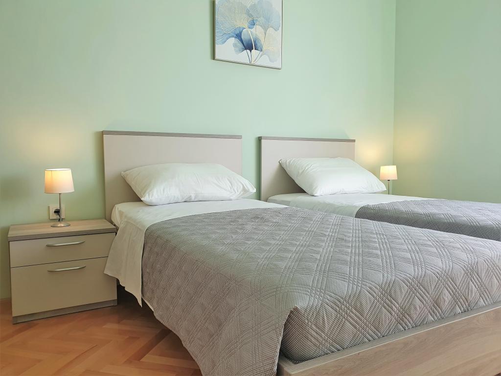 Cena apartamentu obowiązuje dla 4 osób dziennie. Cena obejmuje: jedno miejsce parkingowe, sprzątanie końcowe, wszystkie koszty ogólne, pościel i ręczniki, korzystanie z klimatyzacji, opłata klimatyczna. Łóżko dla 5. osoby jest dodatkowo płatne 10 EUR (dzieci do lat 3 bezpłatnie). Przy rezerwacji wpłacana jest kaucja w wysokości 100 EUR, a reszta jest wypłacana po przybyciu do apartamentu. Przy wynajmach dłuższych niż dwa tygodnie poza sezonem (lipiec i sierpień) udzielamy dodatkowego rabatu od podanych cen! Oczekujemy przybycia gościa po godzinie 14:00, a wyjazdu do godziny 09:00.