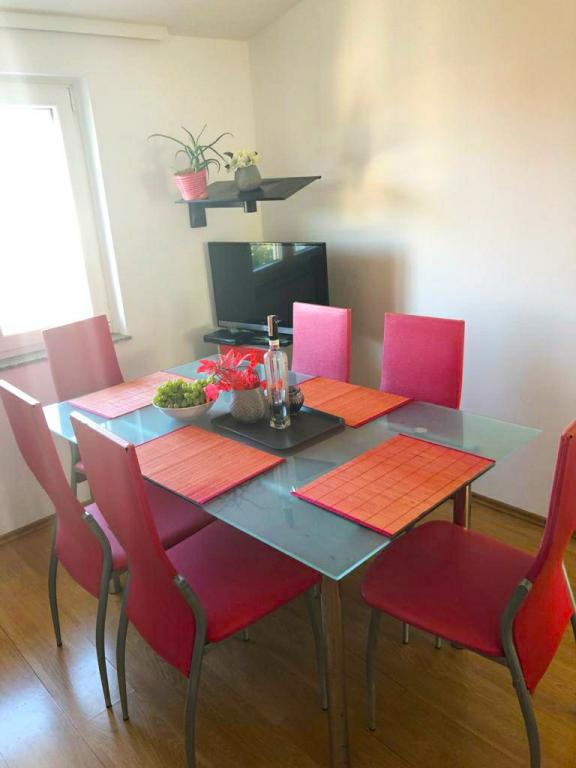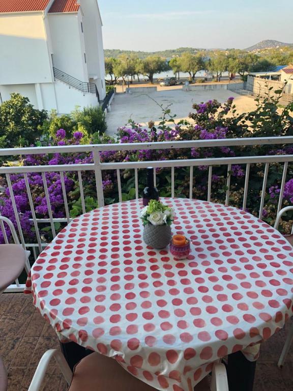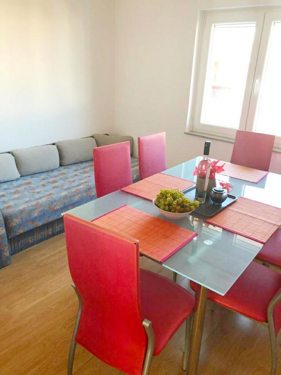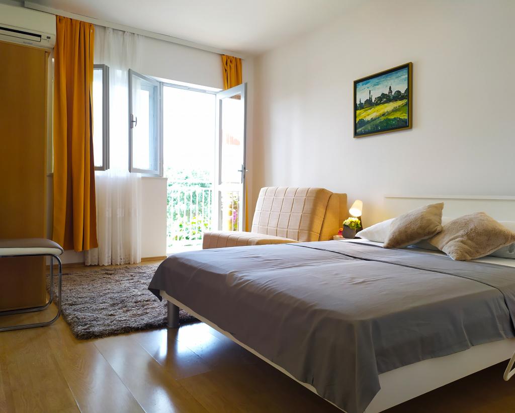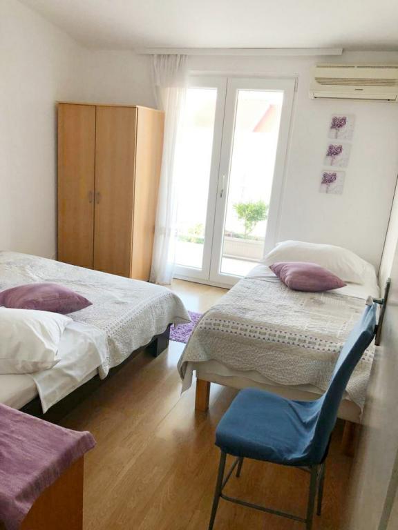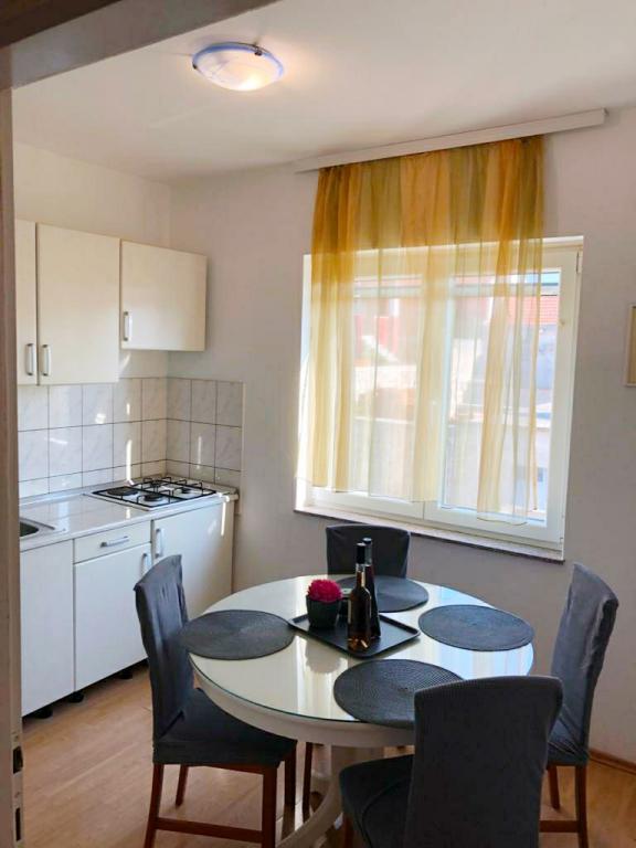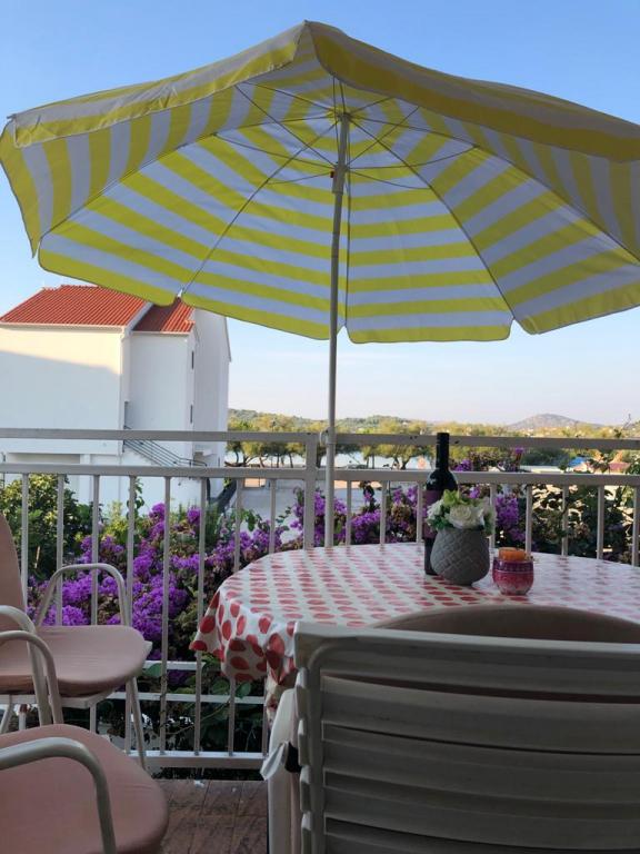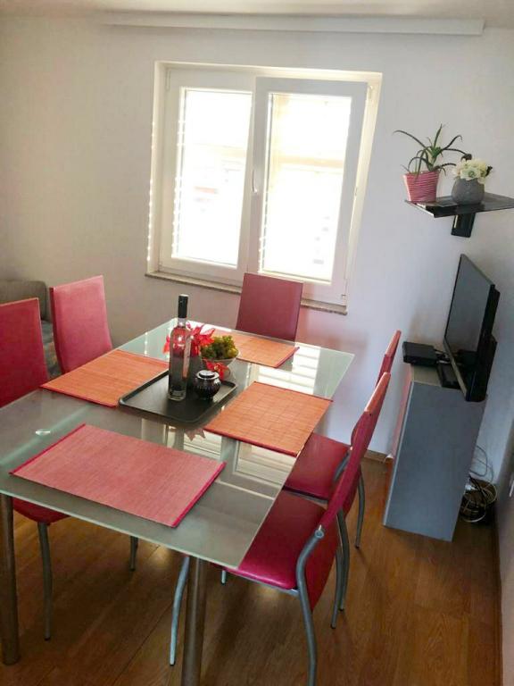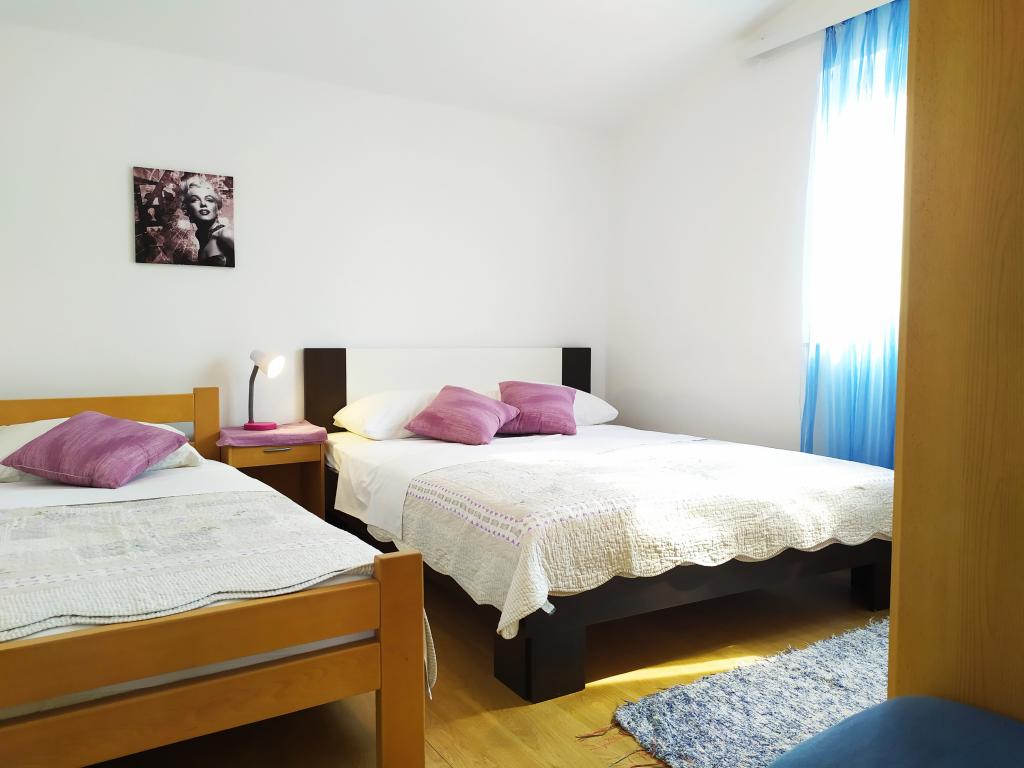 Apartamenty są wyposażone i nowoczesne i znajdują się w małym i cichym miejscu Srima. Apartamenty mają widok na morze i znajdują się 2 minuty spacerem od plaży i centrum miasta. Apartamenty znajdują się na pierwszym i drugim piętrze domu rodzinnego. Apartamenty posiadają dwie sypialnie z dostawkami, kuchnię z salonem, łazienkę i balkon z widokiem na morze. Zawierają również klimatyzację, Internet, telewizję satelitarną, kuchenkę, lodówkę, czajnik oraz naczynia i pościel. Dzięki swojej wielkości i komforcie apartamenty są idealne dla rodzin wielodzietnych, które chcą ciszy, cienia, bliskości plaży i niezapomnianego zachodu słońca!