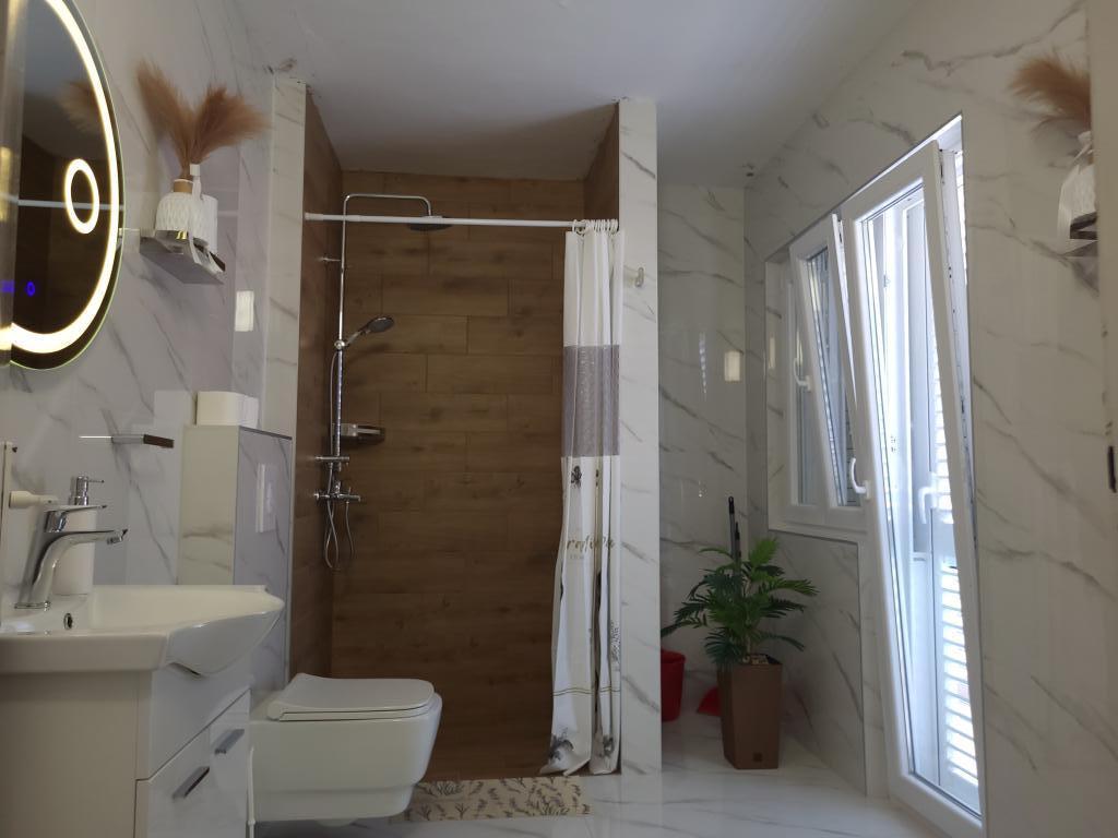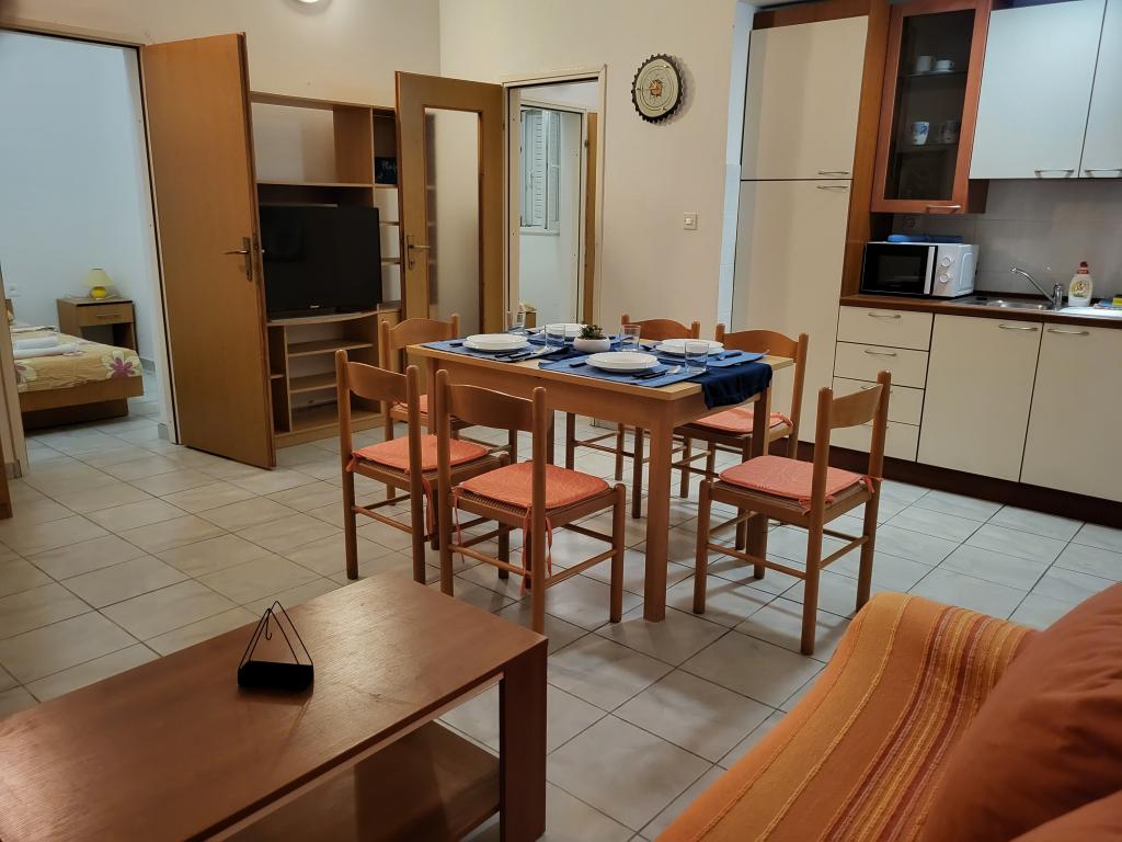 W pełni wyposażone apartamenty, internet, TV, klimatyzacja, grill, taras. Odległość do betonowego plateau-leżaka 30m, odległość do małej piaszczystej plaży 30m, odległość do dużej piaszczystej plaży 200m