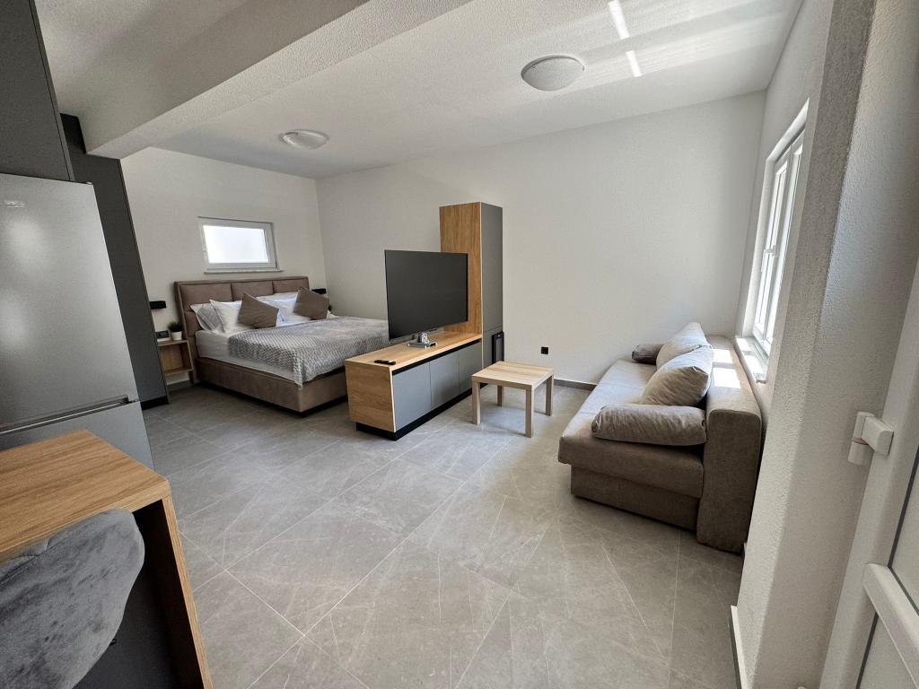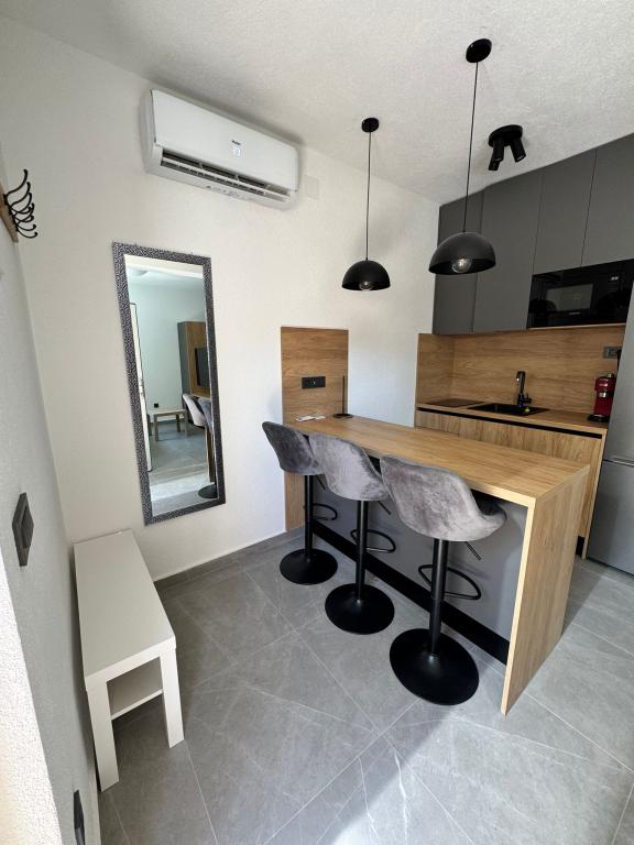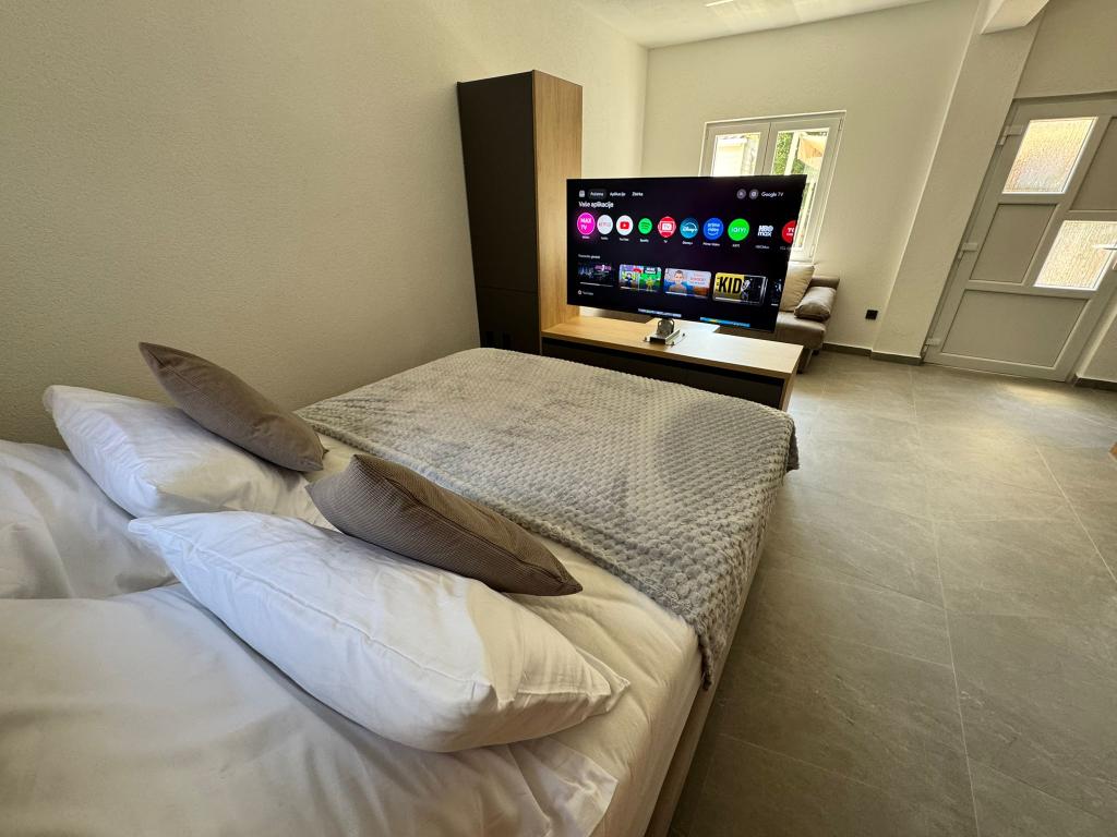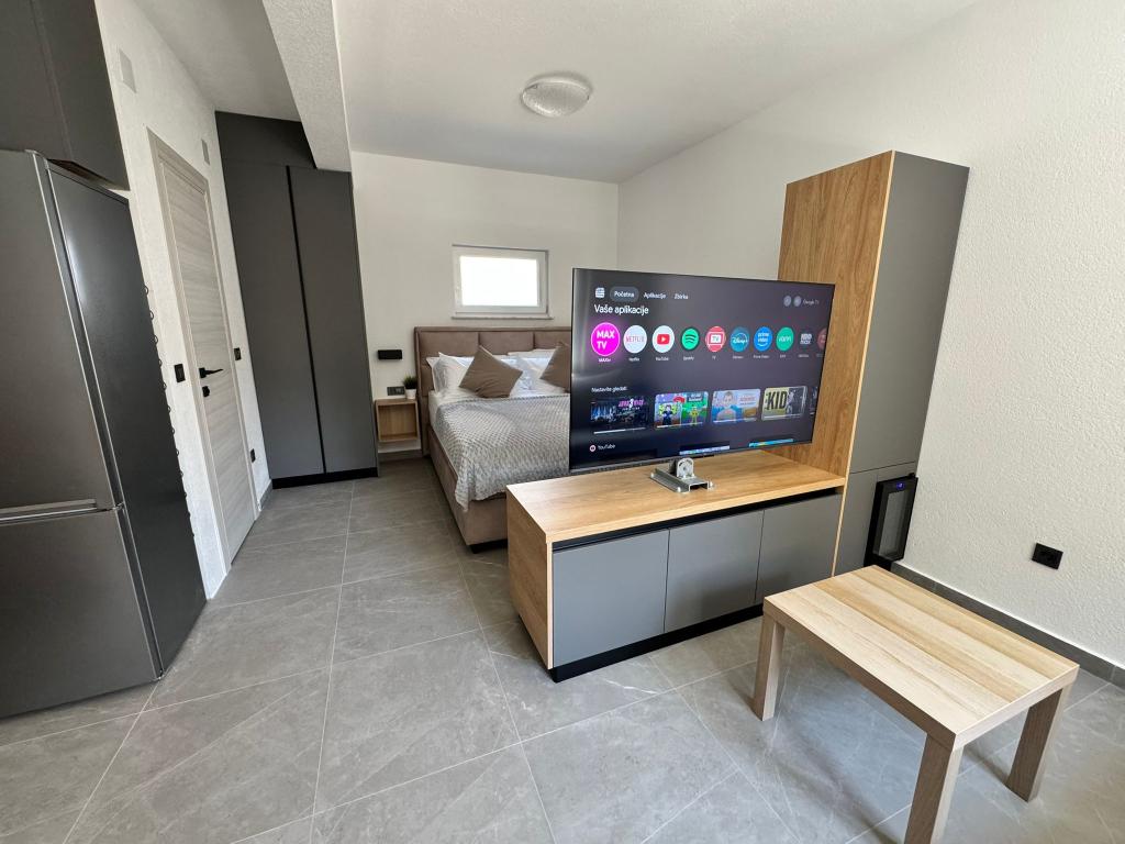 Nowo umeblowane i całkowicie odnowione studio znajduje się w oddzielnym budynku w spokojnej części Starigradu, zaledwie 1 km od wejścia do Parku Narodowego Paklenica i 500 m od morza, co czyni je idealnym wyborem dla miłośników morza i natury. Apartament przeznaczony jest dla 3 osób i wyposażony we wszystko, czego potrzeba do przyjemnego i relaksującego wypoczynku: klimatyzację, Wi-Fi, Google TV (Netflix i MaxTV), w pełni wyposażoną kuchnię (zmywarka, kuchenka mikrofalowa z grillem, ekspres do kawy...), nowoczesną łazienkę (pralka) oraz wysokiej jakości łóżko. Do dyspozycji gości jest również przyjemny taras z altaną i grillem na podwórku. W pobliżu apartamentu znajdują się restauracje, apteka i stacja benzynowa, a do morza można dotrzeć pieszo w 5 minut lub samochodem (1 minuta). Parking znajduje się obok budynku, a gospodarze są zawsze do dyspozycji.