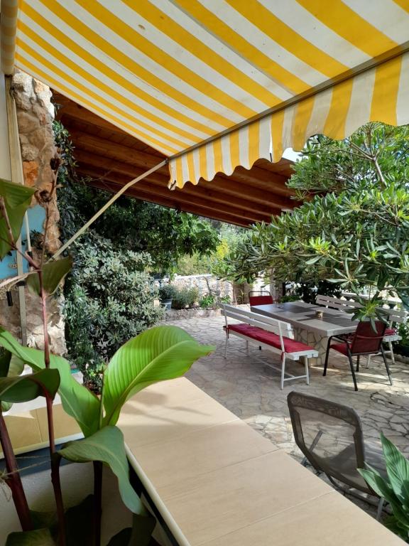 Dom wolnostojący z 5 obszarami mieszkalnymi w spokojnej części Starigradu. Blisko do morza i plaż, restauracji, placów zabaw, centrum. Blisko do Parku Narodowego. W obiekcie znajduje się mała tawerna i grill do bezpłatnego użytku. Każdy apartament ma własny taras (balkon z widokiem na morze) i dwa duże stoły na podwórku.