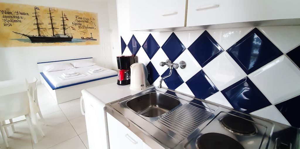 Przytulne studio z pięknym widokiem i tarasem, zaledwie kilka kroków od morza. Sympatyczni właściciele. Polecamy.