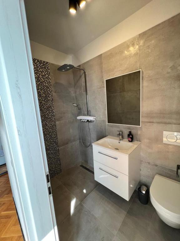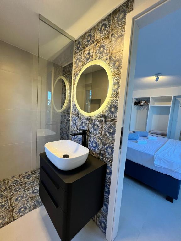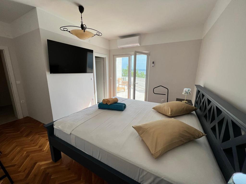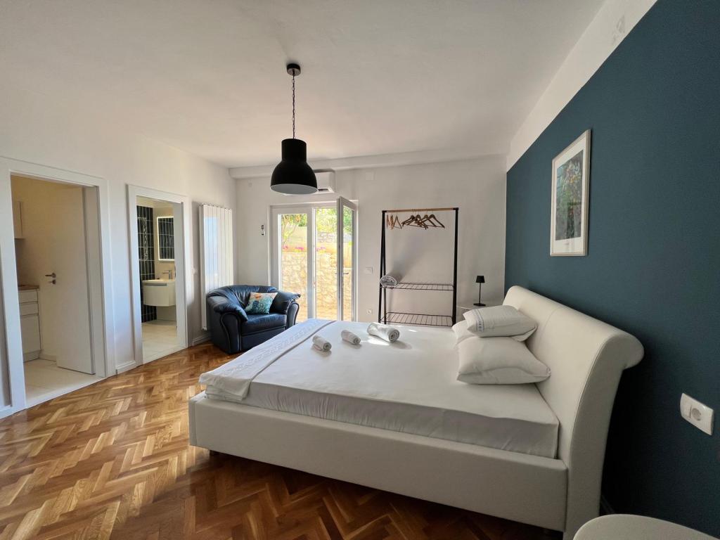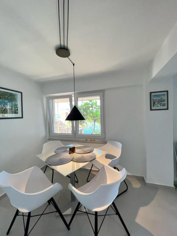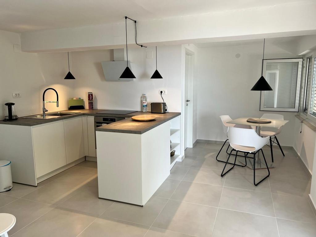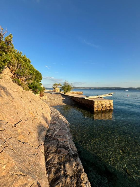 Do wynajęcia są 2 luksusowe apartamenty (1 dla 4 osób i jeden dla 5 osób) i 1 studio dla 2 osób, pierwszy rząd do morza, 4 km od Starigrad-Paklenica. Ciesz się niezapomnianymi wakacjami w naszych ekskluzywnych apartamentach położonych tuż nad brzegiem morza, z bezpośrednim dostępem do krystalicznie czystego morza. Ten obiekt noclegowy oferuje wszystko, czego potrzebujesz na idealne wakacje: Przestronna sypialnia: Elegancko urządzona, z wygodnym łóżkiem i nowoczesnymi detalami, z prywatną łazienką wyposażoną w najwyższej klasy udogodnienia. W pełni wyposażona kuchnia**: Nowoczesna kuchnia z najnowszymi urządzeniami, idealna do przygotowywania pysznych posiłków. Prywatny taras dla każdego apartamentu: Oaza spokoju z pięknym widokiem na morze, idealna do relaksu przy porannej kawie lub wieczornym zachodzie słońca. Prysznic na zewnątrz: Ciesz się orzeźwiającym prysznicem pod gwiazdami, otoczony naturą. Naturalne otoczenie: Apartament znajduje się w pierwszym rzędzie do morza z bezpośrednim dostępem do plaży w idyllicznym otoczeniu, otoczony bujną śródziemnomorską zielenią i zapachem morza.