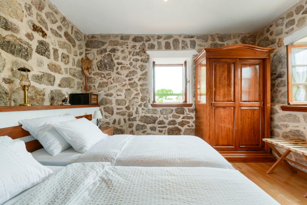 2 DOMY LETNISKOWE - Dom wakacyjny Bura (A4) i dom wakacyjny Adrian (A2) znajdują się 300 m n.p.m., w Parku Przyrody Velebit, 3 km od plaży i centrum Tribanj. Park Narodowy Paklenica oddalony jest o 15 km. Idealna lokalizacja, aby cieszyć się połączeniem gór i morza. Kamienne domy są wyposażone dla komfortowego pobytu 2 - 4 osób. Dom wakacyjny Bura: 2 - 4 osoby (A 4); sypialnia, salon z kuchnią, galeria na poddaszu z 2 łóżkami dla dzieci, łazienka, taras. Kuchnia wyposażona jest w piekarnik, zmywarkę, ekspres przelewowy do kawy, toster, klimatyzację (chłodzenie i ogrzewanie). Dom wakacyjny Adrian (A2): otwarta przestrzeń na parterze na 3 poziomach: kuchnia, salon i sypialnia dla 2 osób, bardzo mała łazienka, taras na parterze z meblami wypoczynkowymi. Piętro: taras z widokiem na morze, łazienka. Kuchnia wyposażona jest w ekspres przelewowy do kawy, toster. Klimatyzacja (chłodzenie i ogrzewanie). Na podwórzu znajduje się czarna kuchnia.