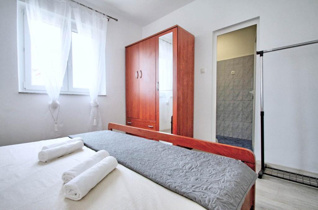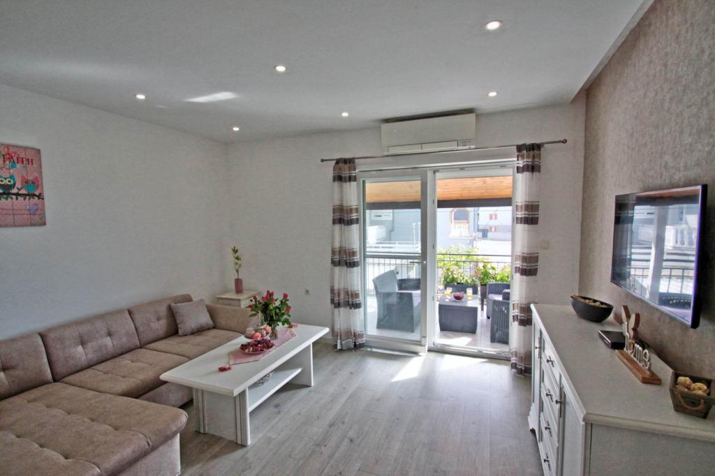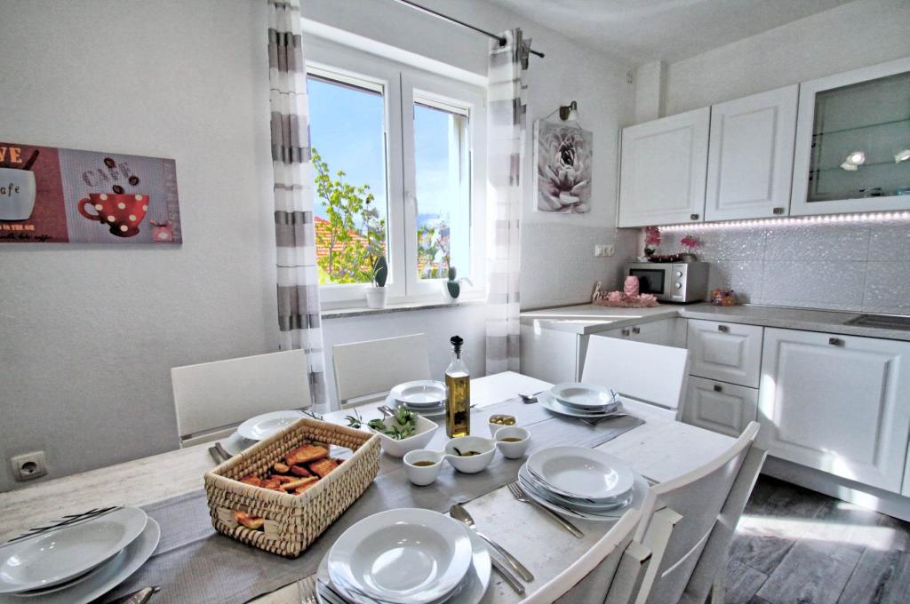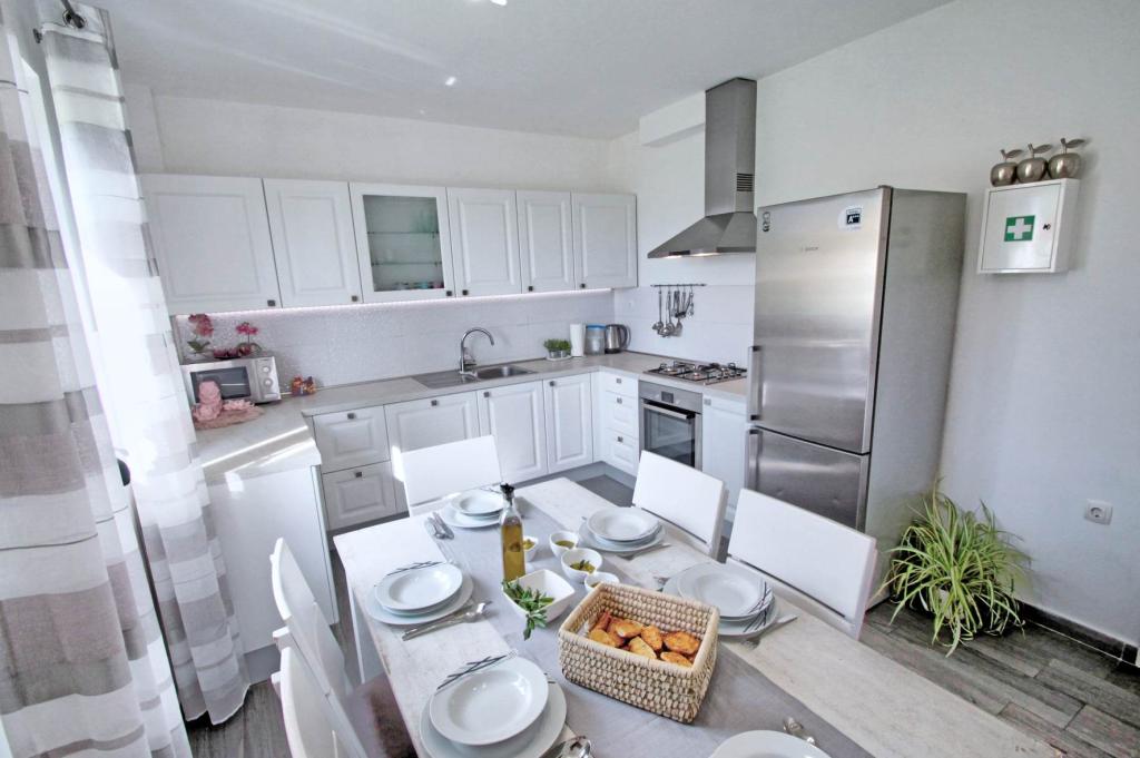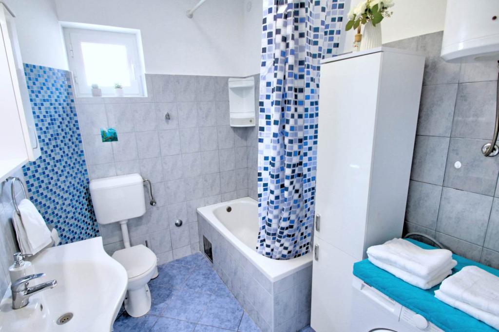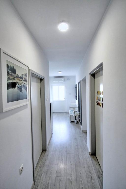 W pełni wyposażony apartament na 1 piętrze dla 6+2 osób. Oddzielne wejście. Duży, oddzielny i zadaszony taras z bezpośrednim widokiem na morze. Mieszkanie ma 3 sypialnie, 2 toalety, z których jedna jest połączona z sypialnią. Plaża znajduje się 40 m od apartamentu, ma naturalny cień i piaszczyste boisko do siatkówki. Centrum oddalone jest o 300 m, a wszystko inne w promieniu 100 m.