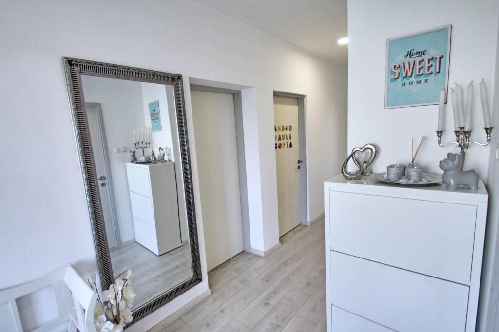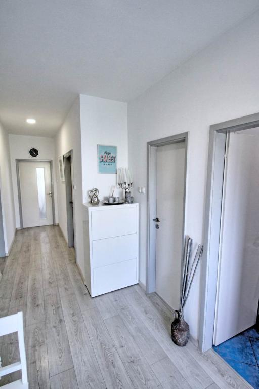 Wszystkie rekomendacje do apartamentu, byliśmy tam niedawno z naszymi dziećmi i było cudownie, począwszy od gościnności Pani Elżbiety, poprzez czystość i wyposażenie apartamentu, aż po bliskość plaży i wszystkie niezbędne udogodnienia (sklep, kawiarnia, fast food, restauracja). Plaża, bogata w naturalny cień, jest oddalona o kilka kroków, jest też park dla dzieci i boisko do siatkówki, jest dużo płycizn, więc jest odpowiednia dla dzieci i dla wszystkich, którzy chcą spokojnego otoczenia bez zbytniego tłumu i hałas. Jeśli chodzi o apartament, to naprawdę ma wszystko, czego potrzeba, jest przestronny, czysty, pięknie i nowocześnie urządzony, pełen pięknych detali, które sprawiają, że pobyt jest jeszcze przyjemniejszy. Dużym plusem dla nas był pokój dziecięcy z zabawkami, dzieciom bardzo się podobało Powita Cię duży piękny taras z widokiem na morze i wierzę, że tak jak my poczujesz się jak w domu