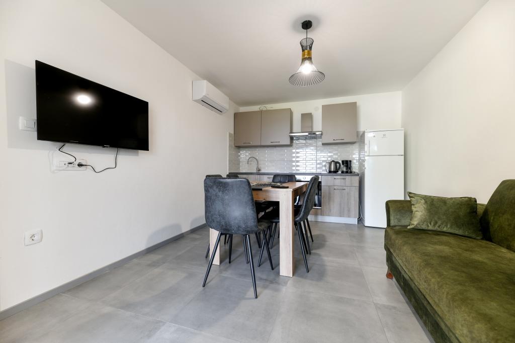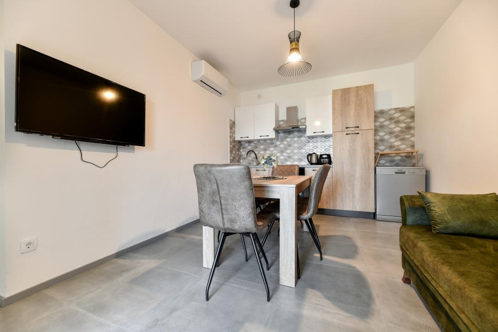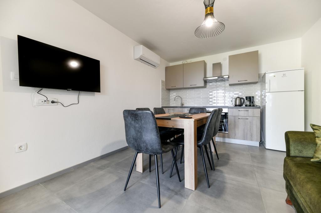 Apartamenty są nowe, piękne, w pełni wyposażone. Wracamy wielokrotnie od 5 lat, za cudowny widok na morze, doskonały relaks i dobre samopoczucie. Morze jest po drugiej stronie ogrodu, a plaża dla dzieci jest tuż za rogiem. Właściciele wspaniali, mili, uczynni i ciepli. Przyjdziemy ponownie
