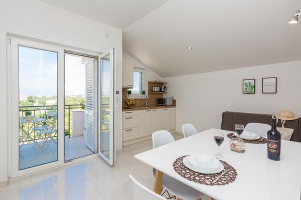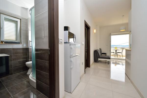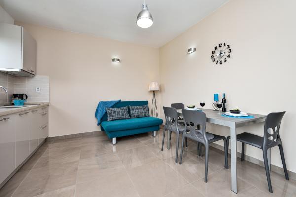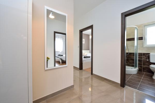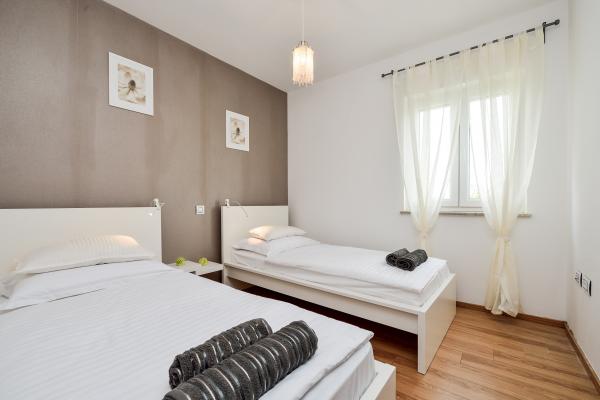 Mieszkanie nowocześnie urządzone, niezwykle czyste i dostępne we wszystkim co potrzebne w gospodarstwie domowym, każdy pokój posiada klimatyzację (nigdzie jej nie mieliśmy) gospodarze przygotowali wszelkie możliwe instrukcje ułatwiające pobyt w mieszkaniu i nazwali to (np. Najbliższe restauracje, sklepy, miejsca, które można odwiedzić, cenniki dostaw jedzenia ...), wspominając o domowych ziołach, które można u nich kupić w przystępnej cenie i super. Na każdym piętrze znajduje się kącik, w którym ułożone są książki, książeczki z obrazkami, puzzle, gry dla dzieci ... Do plaży jest ok. 150 m od apartamentu. Gospodarze Kristina i Vinko są bardzo otwarci, mili, gotowi odpowiedzieć na każde pytanie. Tutaj przesyłamy im pozdrowienia i wszystkiego najlepszego !! Sanja, Damir i Mia