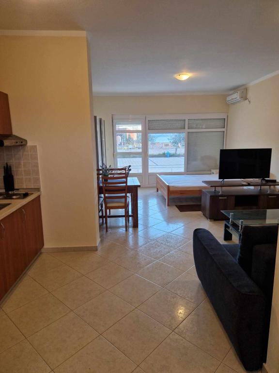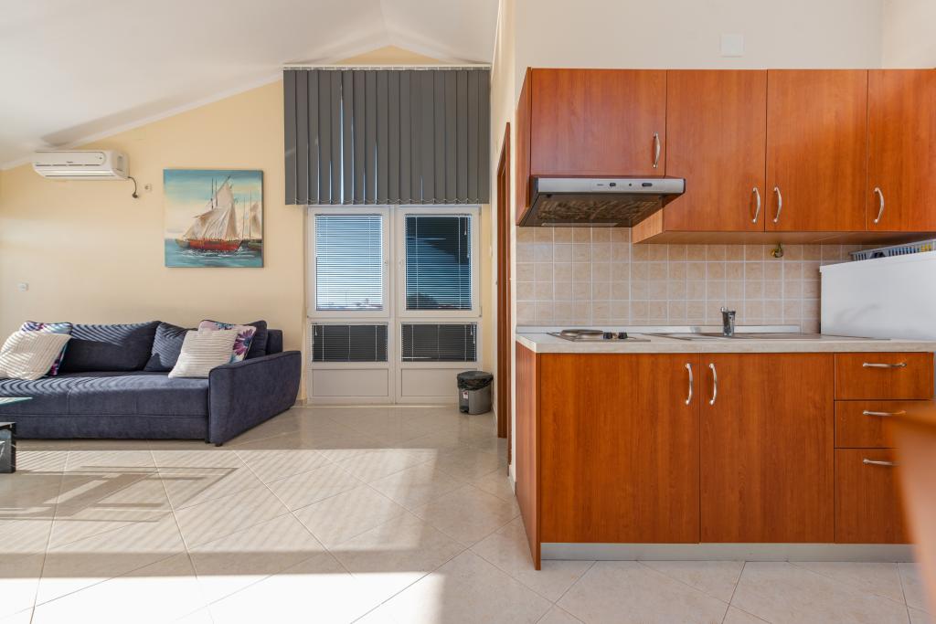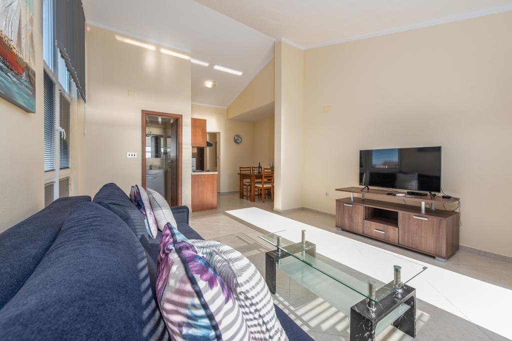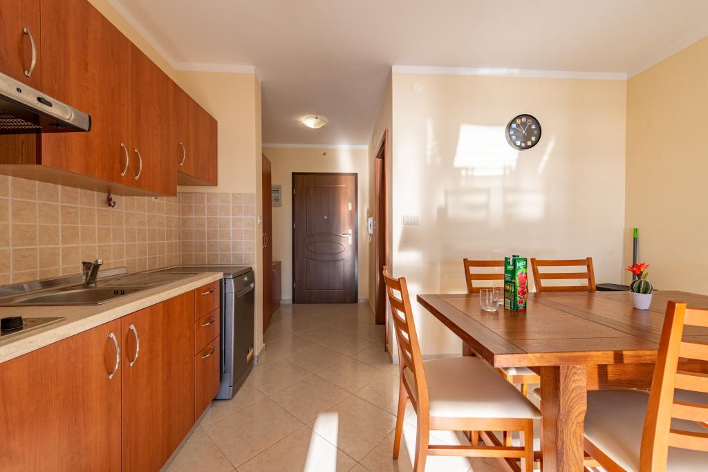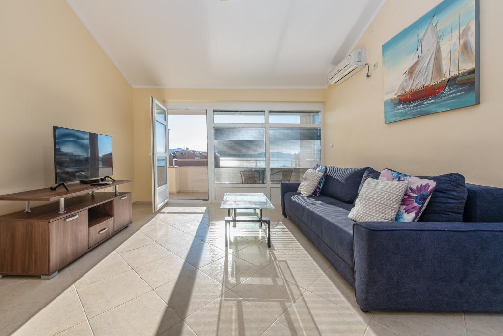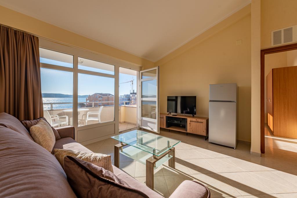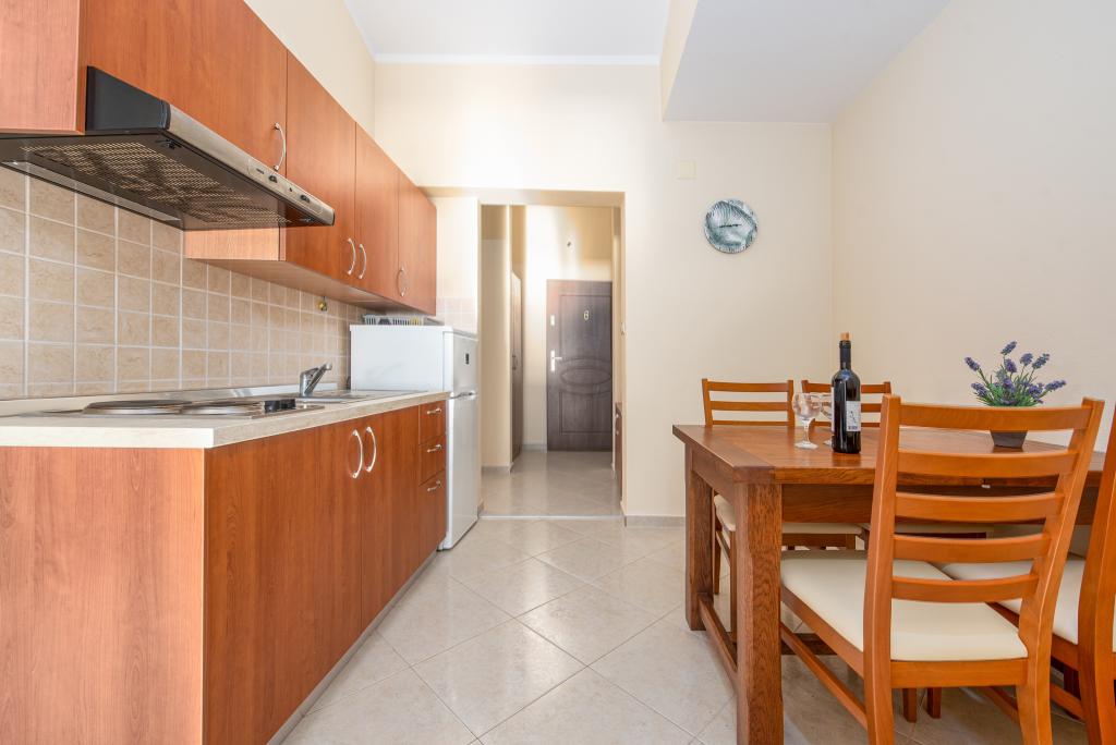 Mieszkanie jest dobrze wyposażone i posiada dwa balkony z pięknym widokiem na morze. Klimatyzacja pozwala dostosować temperaturę w pomieszczeniu w zależności od pogody. Lokalizacja idealna dla rodzin z dziećmi, niemal bezpośrednio przy plaży, a mimo to cicho. W pobliżu znajduje się plaża dla dzieci z piaszczystym dnem. Personel jest przyjazny i pomocny.