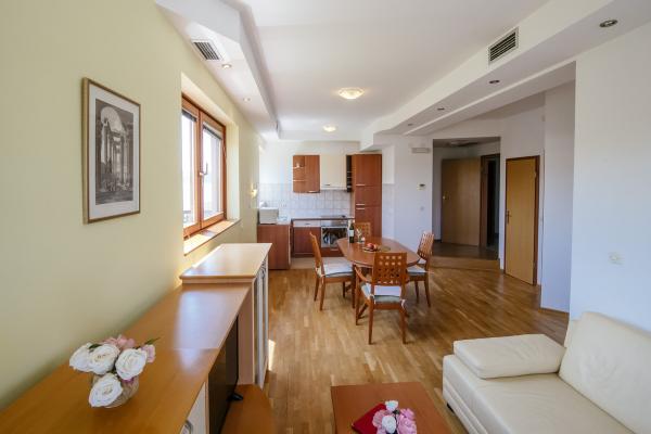 Apartamenty Petra położone są w pierwszym rzędzie od morza, przy popularnej plaży Children's Paradise. Apartamenty są w kategorii 4 i 3 gwiazdek, wyposażone, przestronne, z dużą ilością przeszklonych powierzchni, które tworzą w mieszkaniach wyjątkowo przyjemną atmosferę. Z ogrodu, gdzie do dyspozycji gości jest stół do tenisa stołowego, grill, meble ogrodowe i leżaki (w przyjemnym cieniu), jest bezpośrednie wyjście na plażę. Każdy apartament posiada osobne miejsce parkingowe. W bezpośrednim sąsiedztwie znajdują się restauracje, tawerny, pizzerie, targi oraz stoiska z owocami i warzywami. Place zabaw dla dzieci, park rozrywki i warsztaty dla dzieci, które znajdują się 5 minut spacerem od apartamentu, zachwycą wszystkie maluchy odwiedzające Sukošan. Starsi goście będą zachwyceni festiwalami rybackimi, tradycyjnymi wydarzeniami, doskonałym jedzeniem oraz bliskim sąsiedztwem miasta Zadar oraz parków narodowych Kornati, Krka, Jezior Plitwickich i Paklenica.