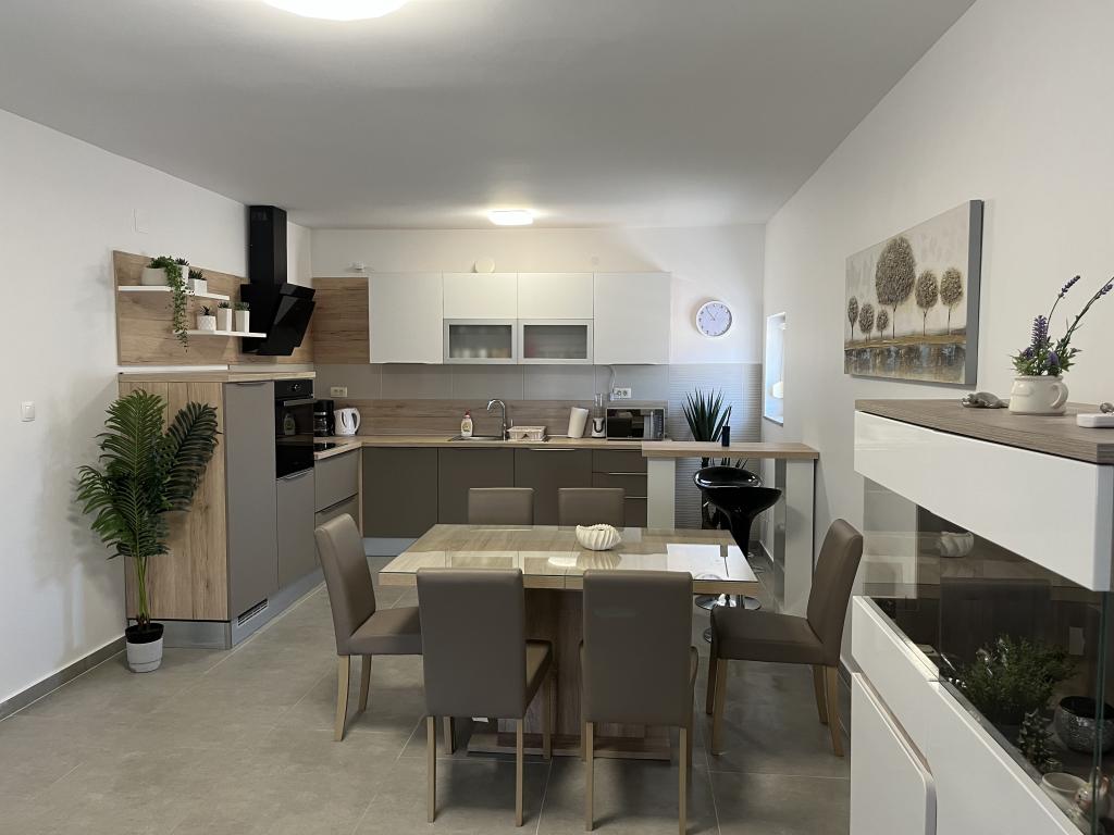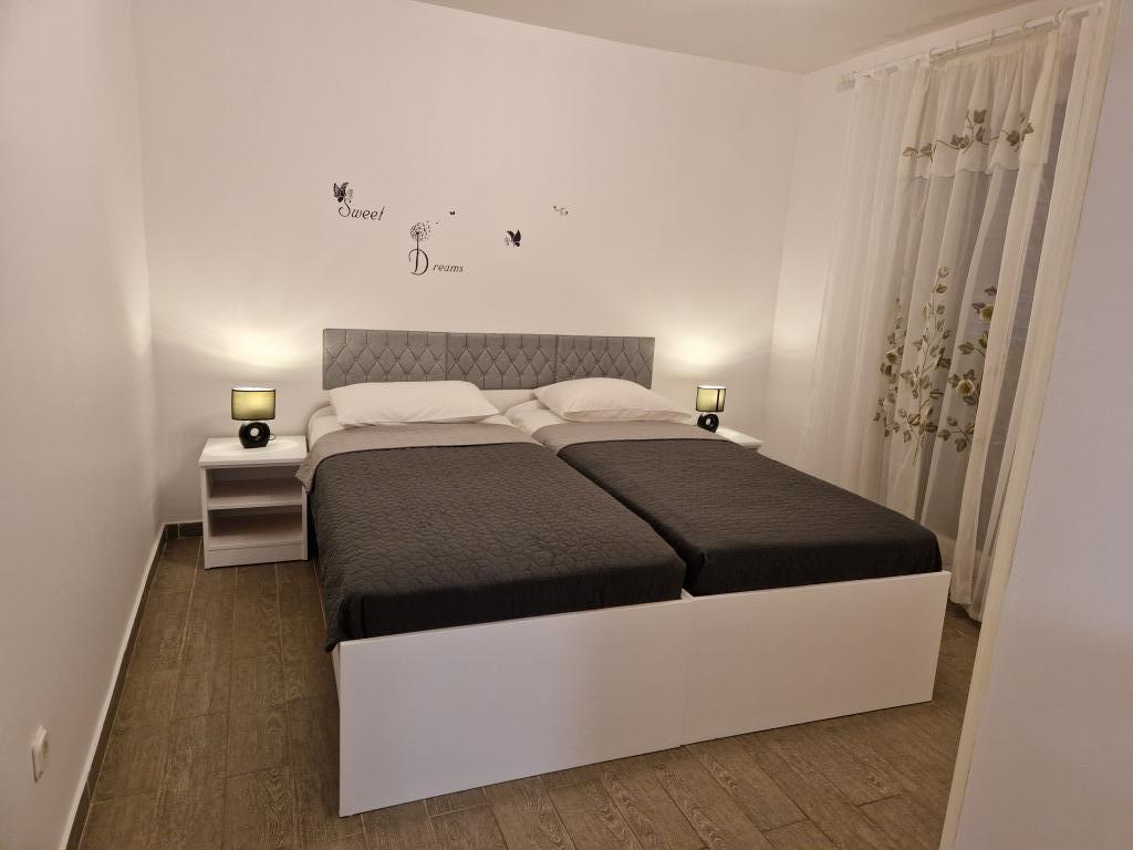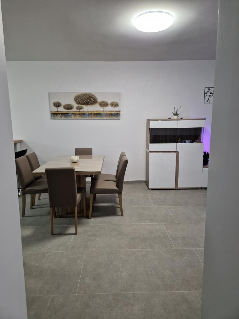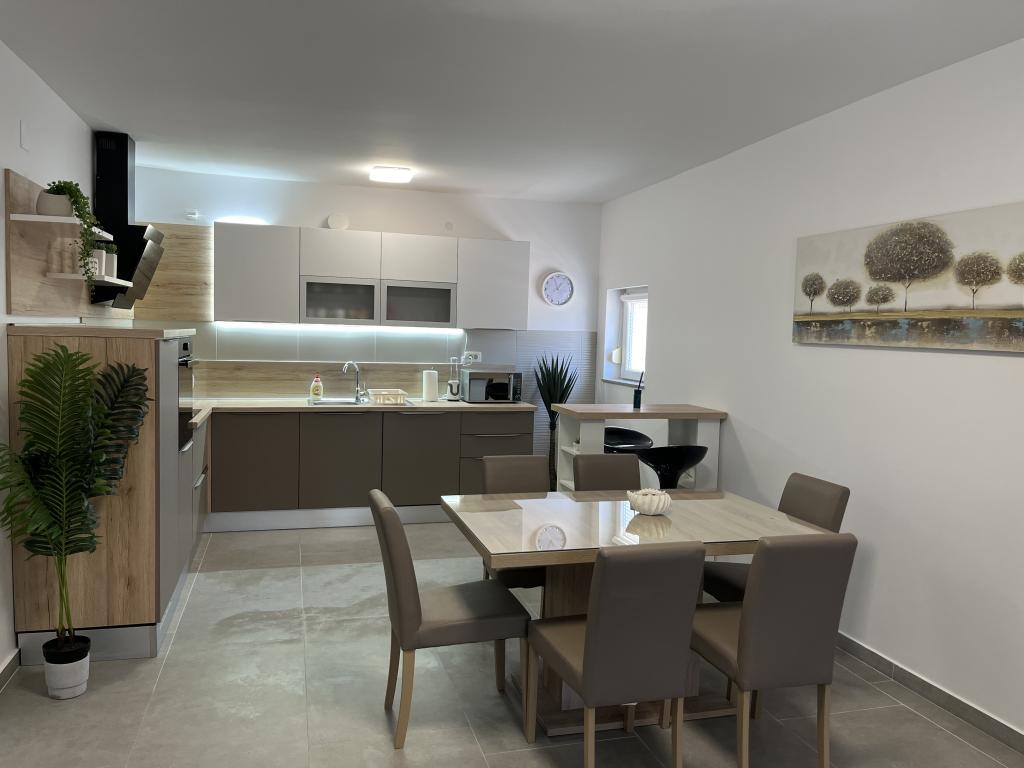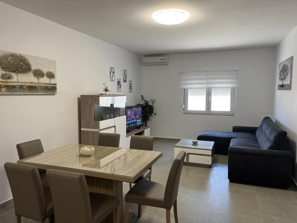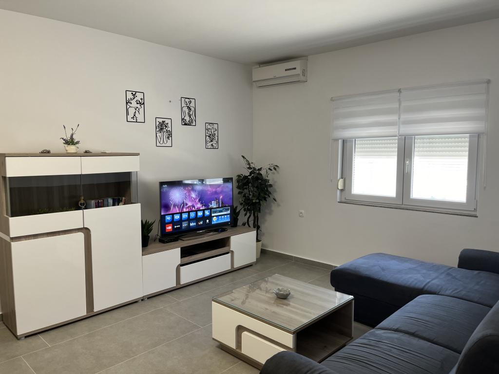 Dom z ogrodzonym podwórkiem w pobliżu mariny D-Mol. W pełni umeblowany i klimatyzowany, odpowiedni dla rodzin ze zwierzętami. Prysznic ogrodowy, grill, cicha okolica z małym natężeniem ruchu. Dom znajduje się trzy minuty spacerem od najbliższej plaży i pięć minut spacerem od centrum miasta. Parking dla samochodu na podwórku pod zadaszeniem. Naturalny cień na podwórku ze stołem w cieniu. Meble ogrodowe. Internet i drewno do grilla są bezpłatne.