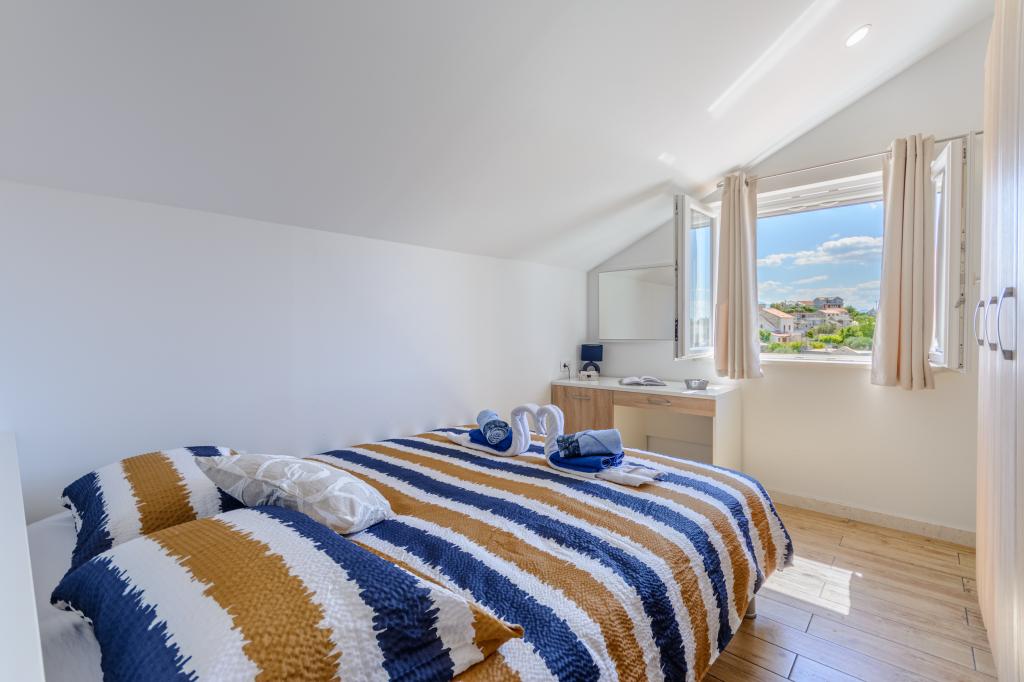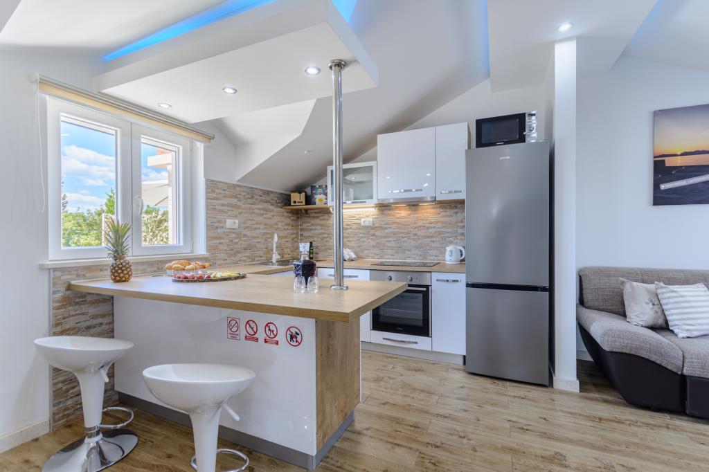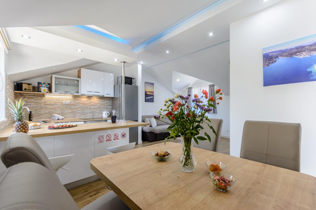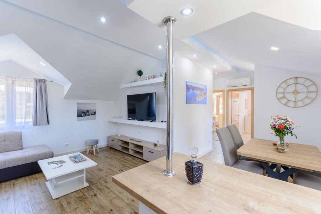 Zapraszamy do naszego urokliwego apartamentu położonego w samym sercu Sumartinu na pięknej wyspie Brač. Zaledwie 100 metrów od morza, apartament oferuje idealne połączenie komfortu i wygody. Apartament pomieści do 5 osób (4+1) i jest idealny dla rodzin, par lub grup przyjaciół, którzy chcą odpocząć i cieszyć się urokami wyspy. Ciesz się spokojnym pobytem w odległości spaceru od plaż, restauracji i portu. Do dyspozycji Gości jest również strzeżone miejsce parkingowe. Czekamy na Państwa przyjazd!