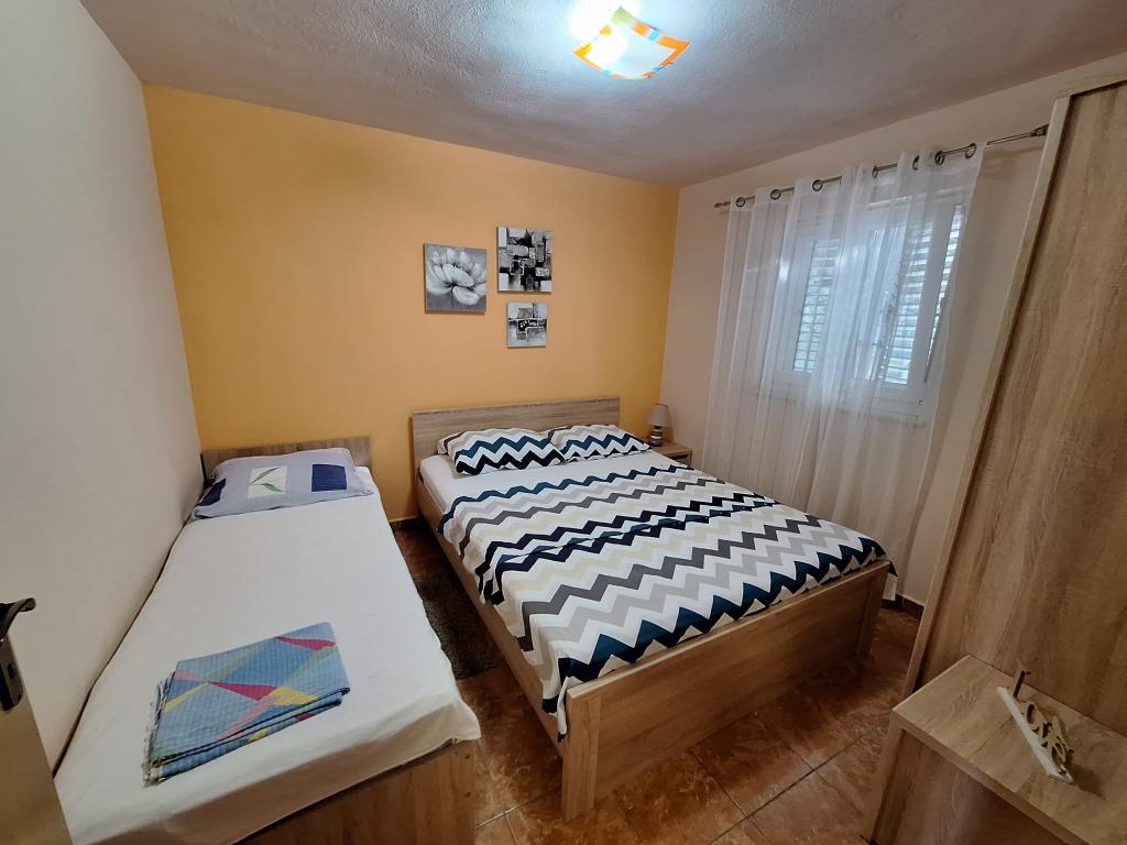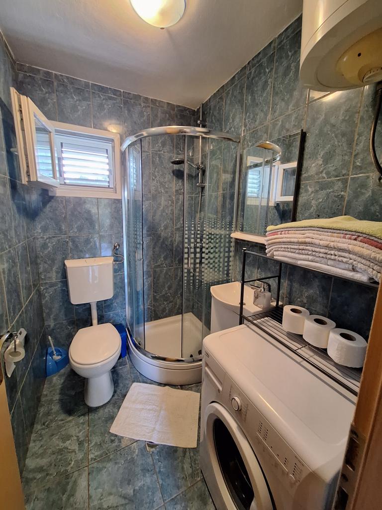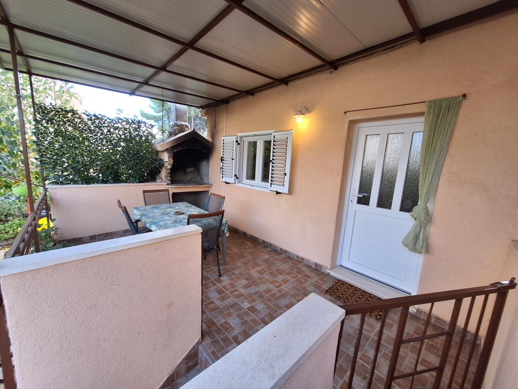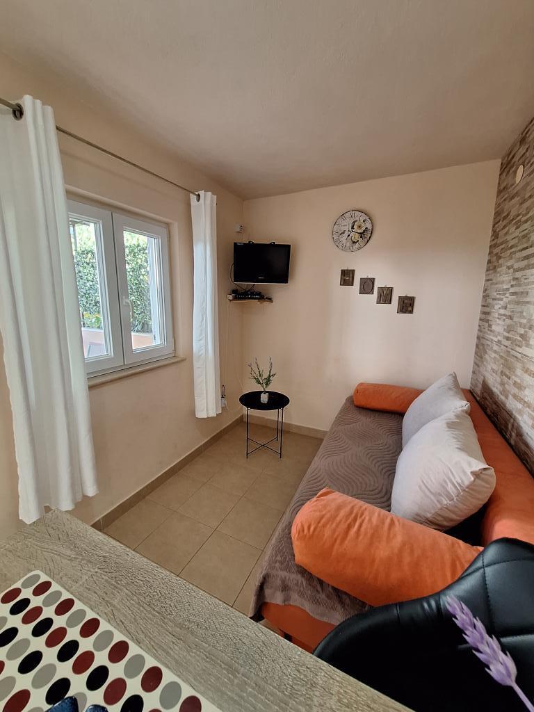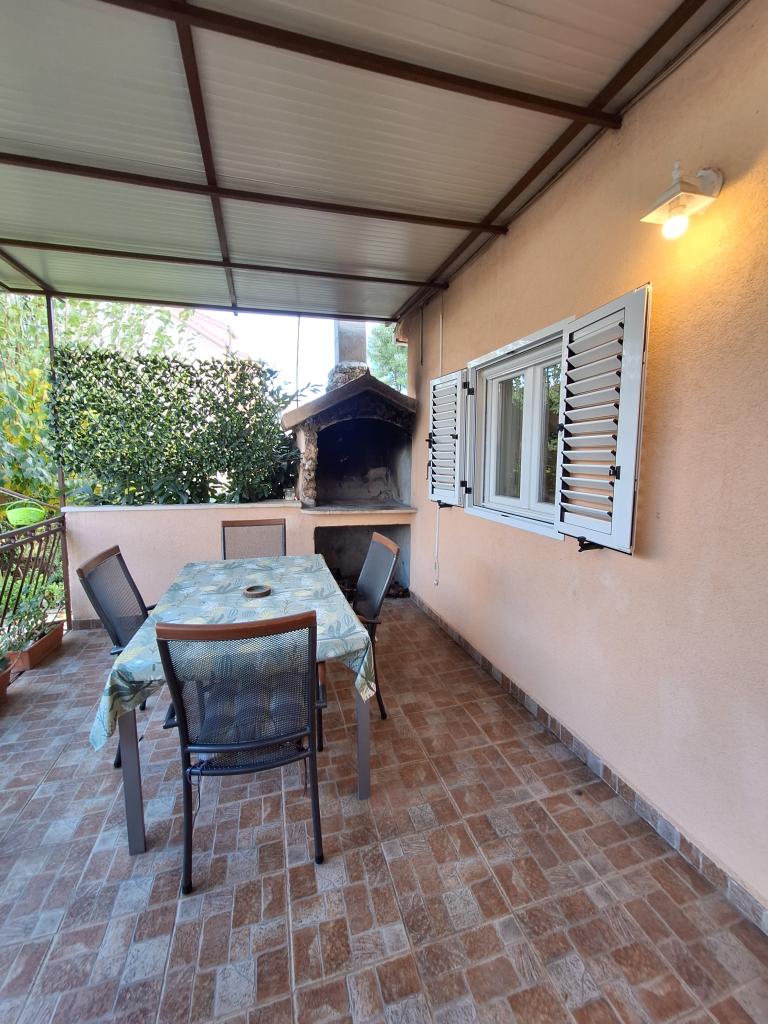 Apartament D Bungalow to oddzielny apartament o łącznej powierzchni 45 m². Składa się z kuchni, przedpokoju z rozkładaną sofą, pokoju z łóżkiem małżeńskim i łóżkiem pojedynczym oraz łazienki z pralką. Do dyspozycji Gości jest również zadaszony taras o powierzchni 15 m² z grillem. Do dyspozycji Gości jest zacieniony parking. Za apartamentem znajduje się ogród ze świeżymi warzywami, z którego mogą korzystać nasi goście. Plaża znajduje się zaledwie 40 m od apartamentu. W apartamencie dostępna jest również klimatyzacja. Zwierzęta domowe są akceptowane za dodatkową opłatą w wysokości 7 euro za małe zwierzęta i 10 euro za duże zwierzęta dziennie.
