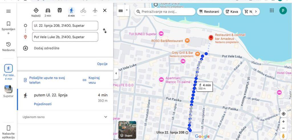 Apartament Lukić znajduje się w Supetar na wyspie Brač, w niezwykle atrakcyjnej, a jednocześnie spokojnej lokalizacji, na zasłużone wakacje. Sam apartament znajduje się w pobliżu nabrzeża i różnych plaż, które ma Supetar. Najbliższa plaża oddalona jest o ok. 250 m, sklep 400 m. Obiekt posiada duży apartament na parterze dla 8 do 10 osób. Mieszkanie jest klimatyzowane, posiada kuchnię, jadalnię, łazienkę, 2 toalety, 4 sypialnie, taras, telewizor i bezpłatne WiFi. W apartamencie znajduje się również grill.