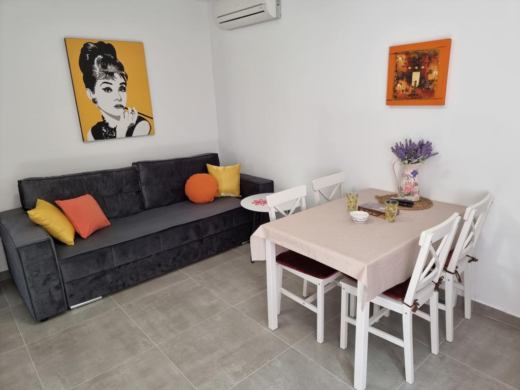 Apartament w doskonałej lokalizacji w centrum Supetar, 100 metrów od plaży i promenady (mniej niż 5 minut spacerem). Na parterze, z wyjściem na taras i duży ogród. Mieszkanie w pełni umeblowane.