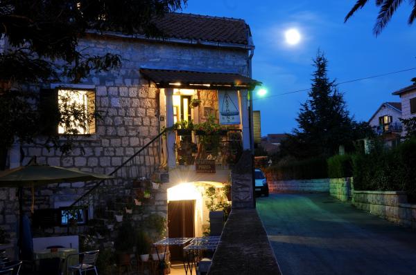 Nasze apartamenty znajdują się w tradycyjnym kamiennym domu w centrum Supetaru. Na podwórku przed domem znajduje się prywatny parking dla samochodów naszych gości. Na tarasie przed domem goście mają okazję usiąść w cieniu przy szklance napoju, z widokiem na morze. Ponadto goście mają możliwość przygotowania posiłków na grillu znajdującym się na tarasie przed domem. Plaża znajduje się tuż przed domem, 20 metrów dalej. W pobliżu znajduje się kawiarnia, restauracje, poczta, kiosk i inne różne oferty. Dom znajduje się w idealnym miejscu dla gości pragnących komfortu na wakacjach. Wszystko dostępne w kilka minut, bez samochodu, czyli idealne dla rodzin z małymi dziećmi.