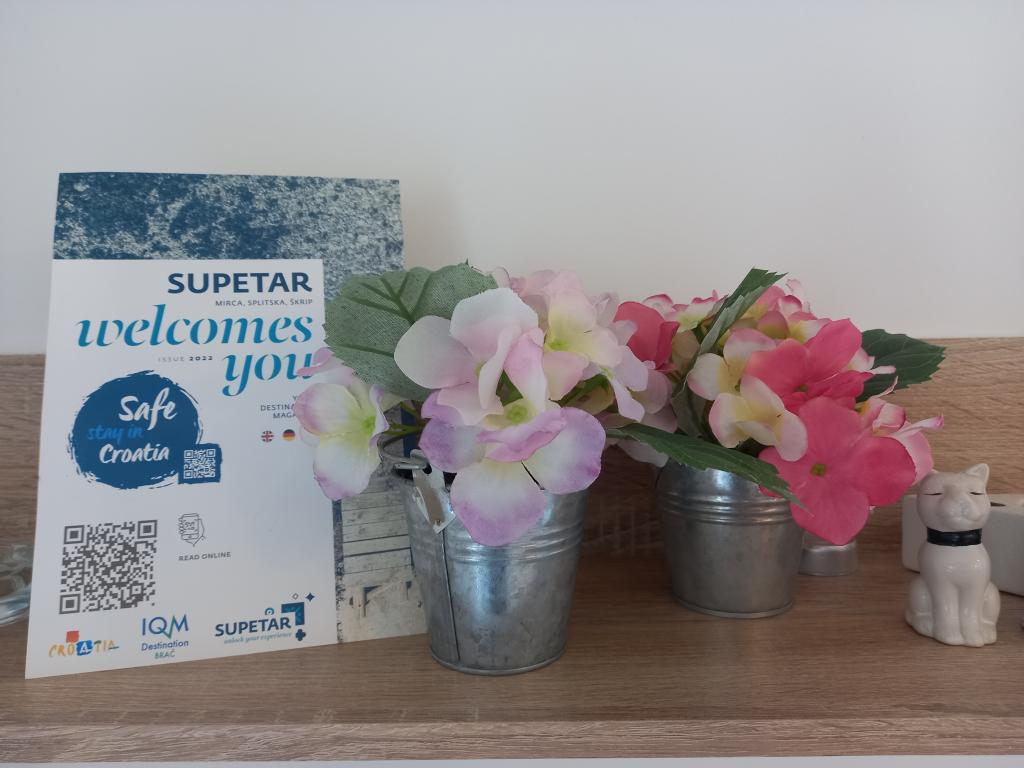 Apartamenty znajdują się w spokojnej części Supetaru. Znajdują się 5-10 minut spacerem od wszystkich udogodnień miasta (restauracji, plaż, sklepów, kortów tenisowych, centrum...). Apartamenty składają się z dwóch sypialni, łazienki, kuchni z jadalnią i salonem oraz zadaszonego balkonu z widokiem na morze. Oba apartamenty wyposażone są w telewizor, Wi-Fi, klimatyzację i strzeżone miejsce parkingowe.