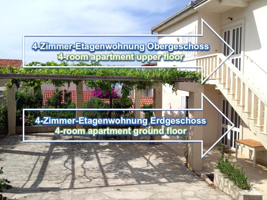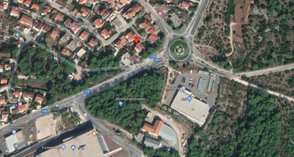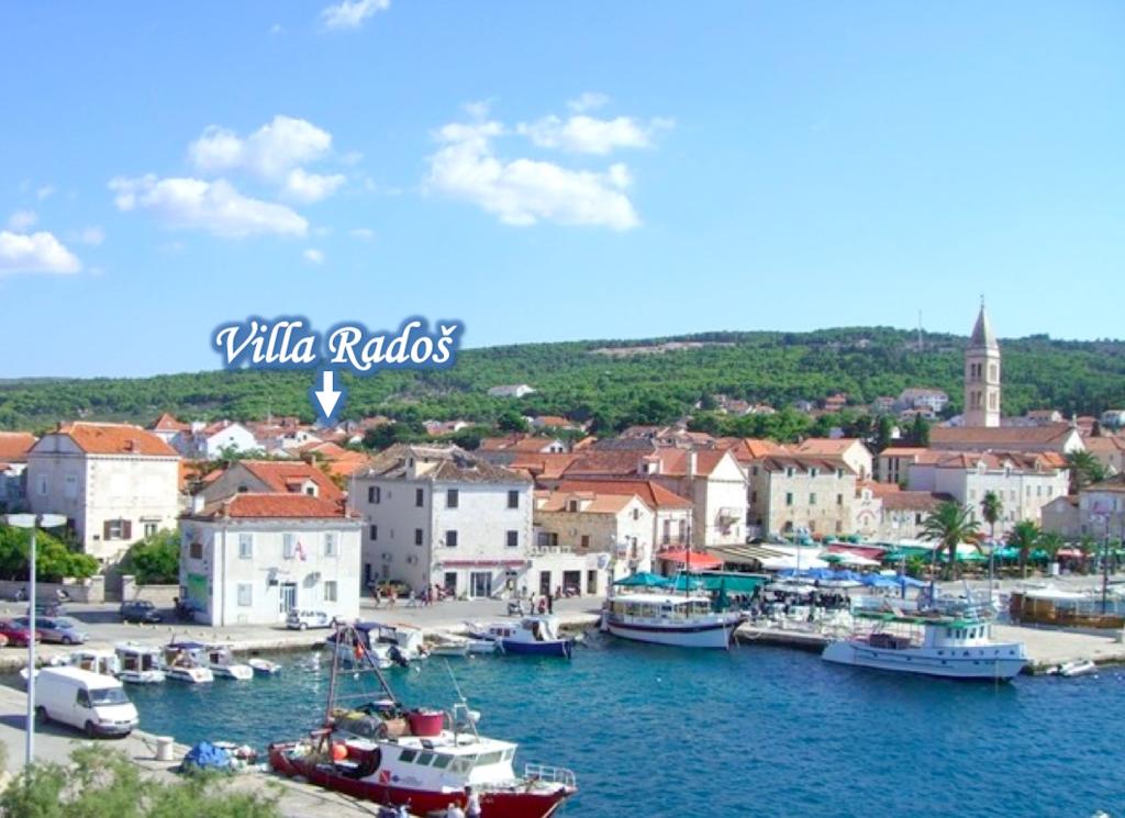 VILLA RADOŠ, 4 gwiazdki, znajduje się we wschodniej części Supetaru naprzeciwko pasa zieleni. To tylko kilka minut spacerem od centrum i plaży. Posiada łącznie 4 mieszkania: 2 piętrowe 4-pokojowe dla max. 6-8 osób, 1 pokój 2-osobowy dla max. 2-4 osób i 1 studio dla max. 2 osoby. Wszystkie nasze apartamenty posiadają duże, w pełni i nowocześnie wyposażone pokoje, co umożliwia spokojny wypoczynek. Każdy dwupoziomowy apartament ma 3 sypialnie (2 trzyosobowe i 1 dwuosobowa), mieszkanie w piwnicy ma 1 pokój trzyosobowy i pokój dzienny z kanapą, a studio ma 1 pokój dwuosobowy z kanapą. Każdy dwupoziomowy apartament posiada 2 łazienki, nowoczesną kuchnię (toster, ekspres do kawy, kuchenka mikrofalowa, zmywarka...), pokój dzienny (SAT-smart-TV, hi-fi, DVD, itp.) oraz duży taras i balkon., a na parterze duży ogród z różnymi kwiatami i owocami cytrusowymi. Mniejsze apartamenty mają po 1 łazience i nowe wyposażenie. Parking na 6 samochodów znajduje się przed głównym wejściem, a po drugiej stronie ulicy znajdują się największe supermarkety LIDL, TOMMY i KONZUM.