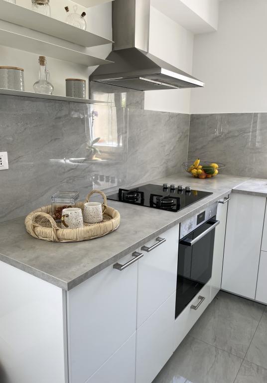W pełni wyposażony apartament w spokojnej okolicy, 50 m od morza i plaży oraz najbliższej kawiarni. 5 minut spacerem do centrum.