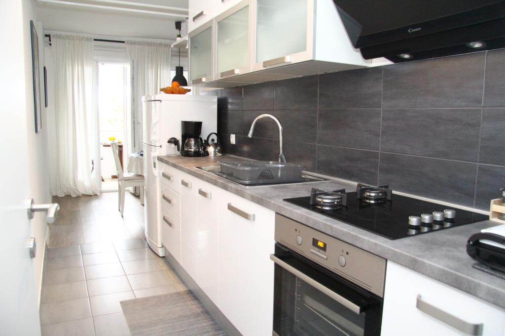 Opłata jest wliczone w cenę.Mieszkanie wyposażone jest we wszystkie niezbędne sprzęty, klimatyzację, pralkę, zmywarkę, lodówkę, kuchenkę, piekarnik i mniejszy sprzęt AGD. Obejmuje również połączenie internetowe WI-FI oraz platformy Netflix i HBO. Najbliższy supermarket znajduje się około 10 metrów od apartamentu, a inne sklepy, targ, apteka, kino, restauracje i plaże znajdują się w odległości około 2 minut spacerem od apartamentu. Do dyspozycji gości są ręczniki, pościel oraz bezpłatny dostęp do Internetu na terenie całego obiektu.