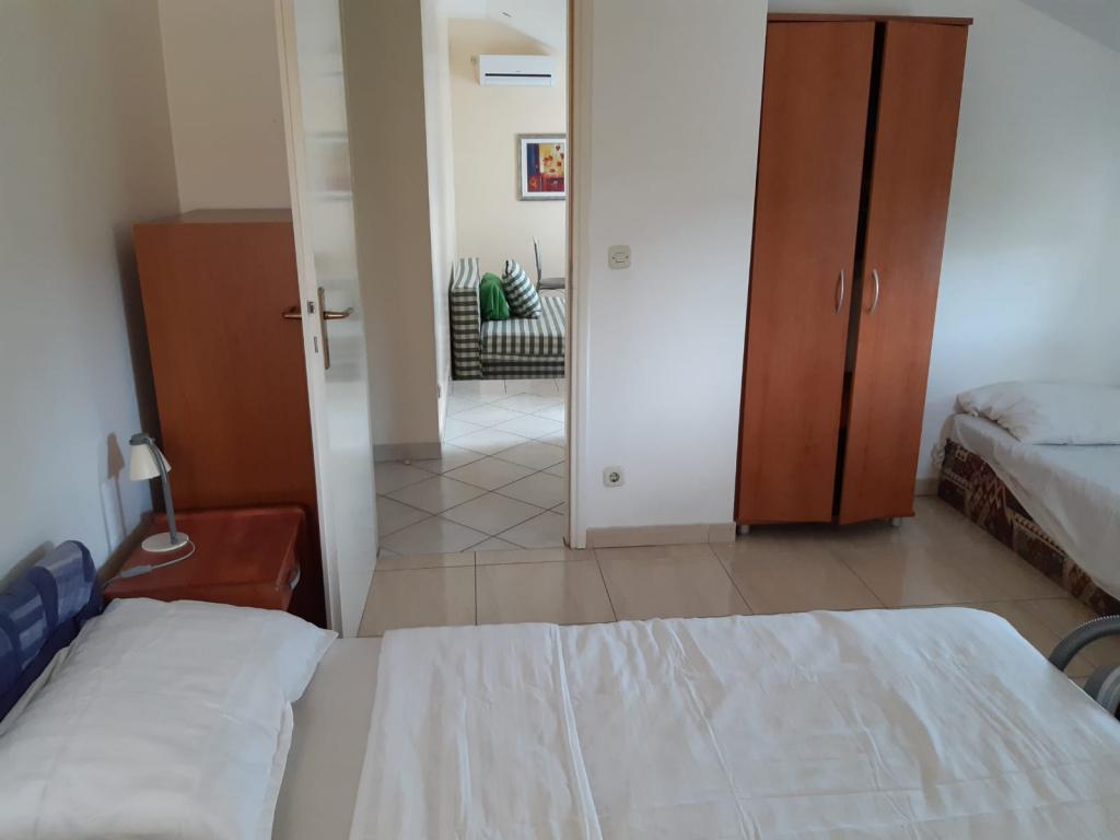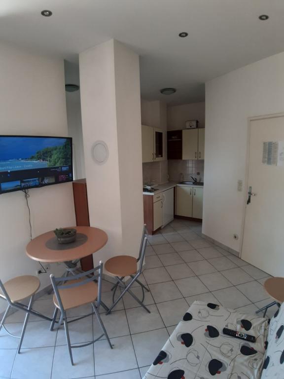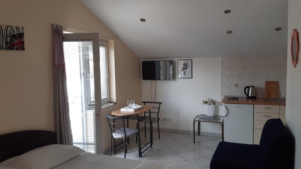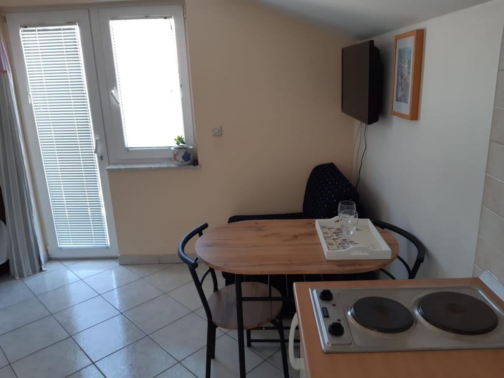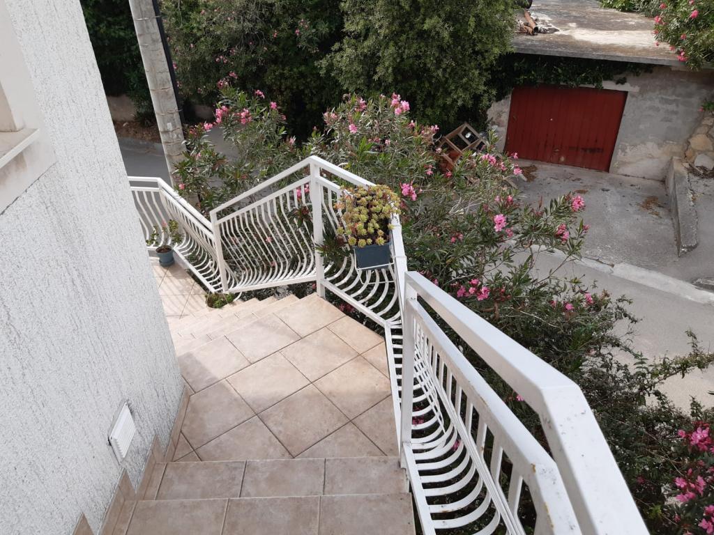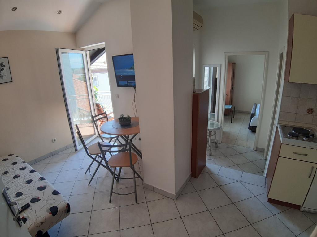 Mieszkanie znajduje się na pierwszym piętrze domu jednorodzinnego w centrum małego miasteczka. W 3-5 minut można dotrzeć do nabrzeża, poczty, banku, kościoła, lekarzy, placów zabaw dla małych sportów. Plaża zaczyna się od nabrzeża i rozciąga się na lewo i na prawo. Plaża jest odpowiednia dla wszystkich grup wiekowych. Apartamenty posiadają własny parking. Ze względu na bliskość innych obiektów samochód generalnie nie jest potrzebny. Apartamenty posiadają bezpłatny dostęp do Internetu, klimatyzację i są wyposażone w nowy SMART TV.