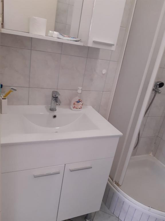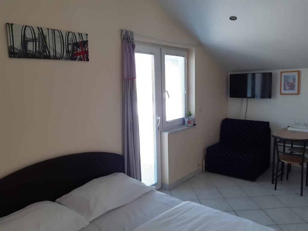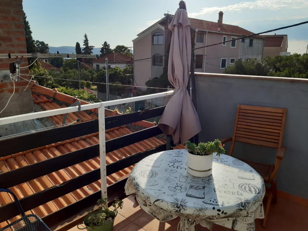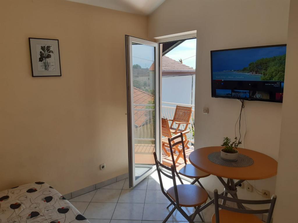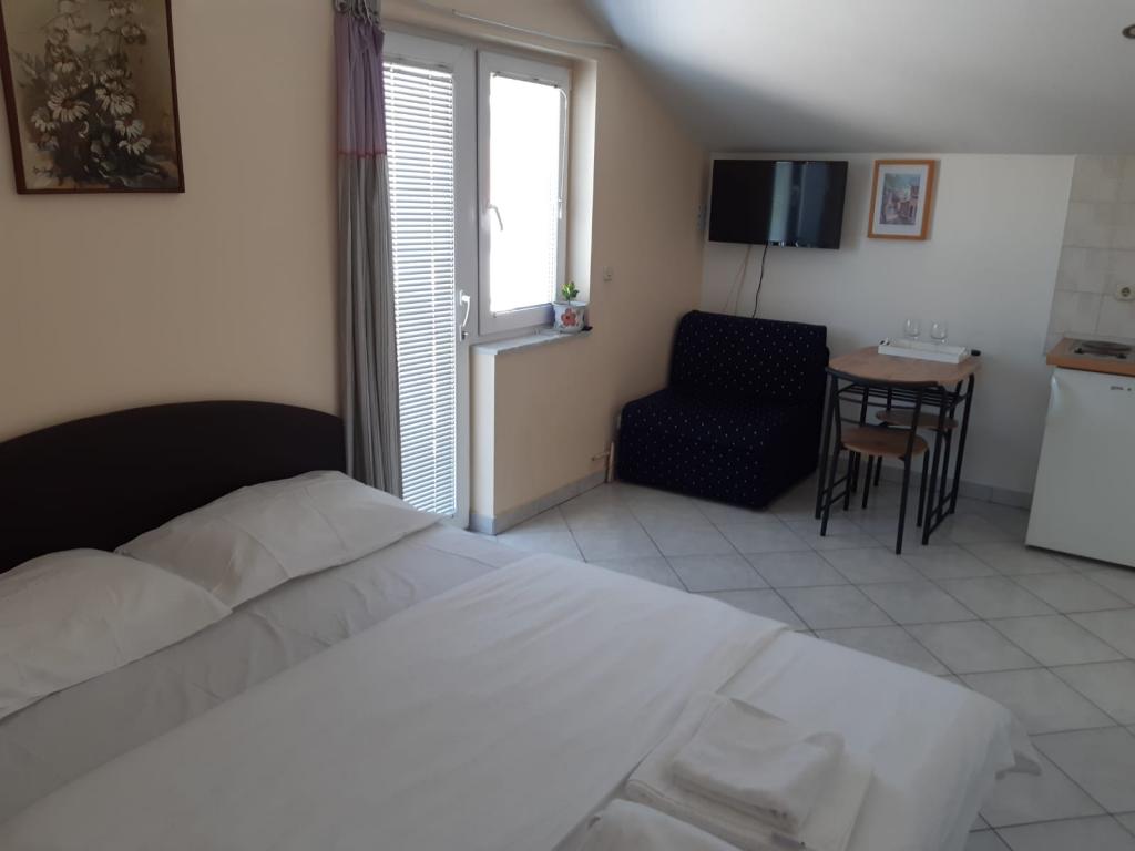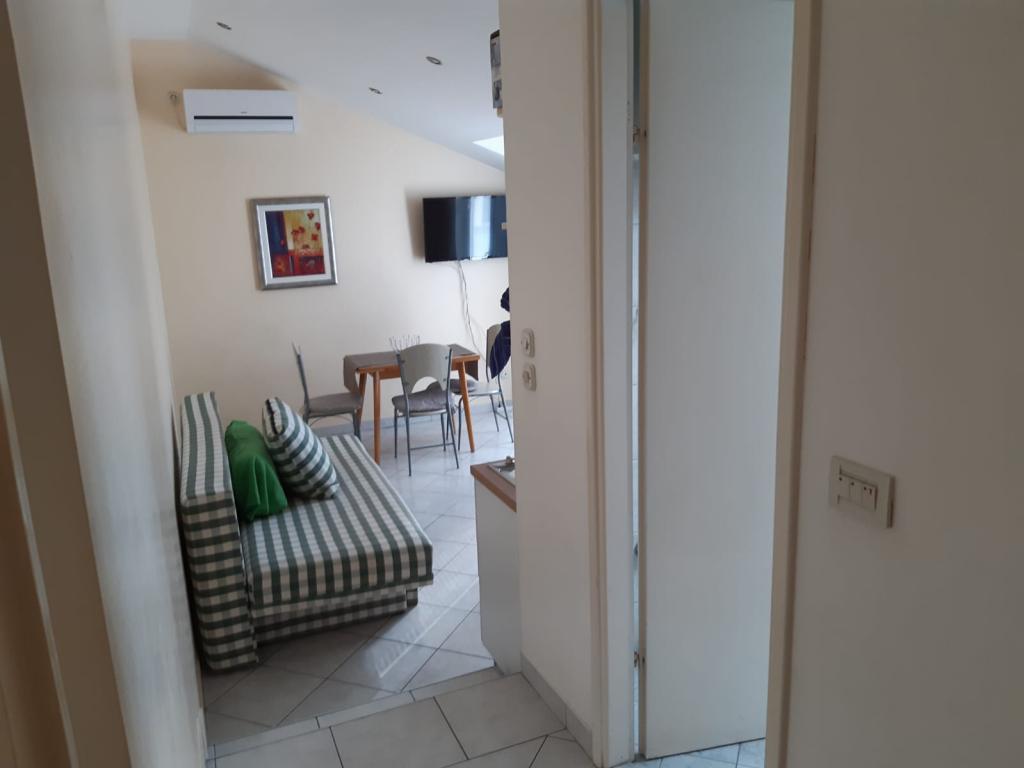 Mieszkanie znajduje się na pierwszym piętrze domu jednorodzinnego w centrum małego miasteczka. W 3-5 minut można dotrzeć do nabrzeża, poczty, banku, kościoła, lekarzy, placów zabaw dla małych sportów. Plaża zaczyna się od nabrzeża i rozciąga się na lewo i na prawo. Plaża jest odpowiednia dla wszystkich grup wiekowych. Apartamenty posiadają własny parking. Ze względu na bliskość innych obiektów samochód generalnie nie jest potrzebny. Apartamenty posiadają bezpłatny dostęp do Internetu, klimatyzację i są wyposażone w nowy SMART TV.